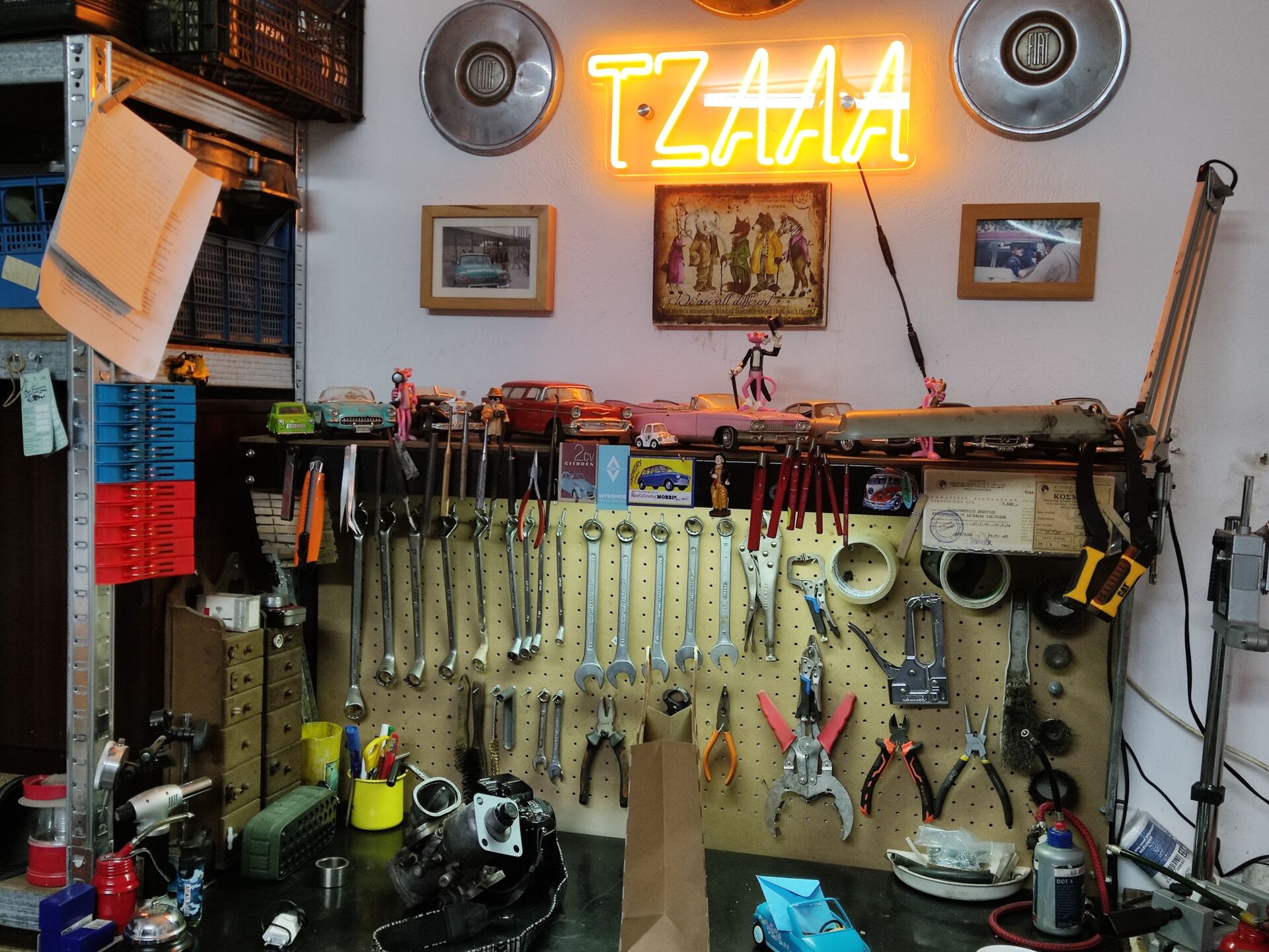 «Μα γιατί Bob;», αναρωτιόμαστε και απαντά χαμογελώντας. «Αυτό το αμαξάκι είναι ο… μπόμπιράς μου. Αλλά τη βασική έμπνευση την πήρα από τον αριθμό πλαισίου του, που στο τέλος έχει ένα “B”. Αυτό είναι ένδειξη ότι το αυτοκίνητο συναρμολογήθηκε στο Βέλγιο». Μας ενημερώνει ότι μαζί με τον Bob πάει πακέτο και ο Louie, το χαριτωμένο 2CV που οδηγούσε ο λατρεμένος του αδερφός Βαγγέλης, που έφυγε από τη ζωή το 2023 (έχοντας στο μεταξύ χαρίσει και μερικά πολύ όμορφα κείμενα στην Parallaxi).