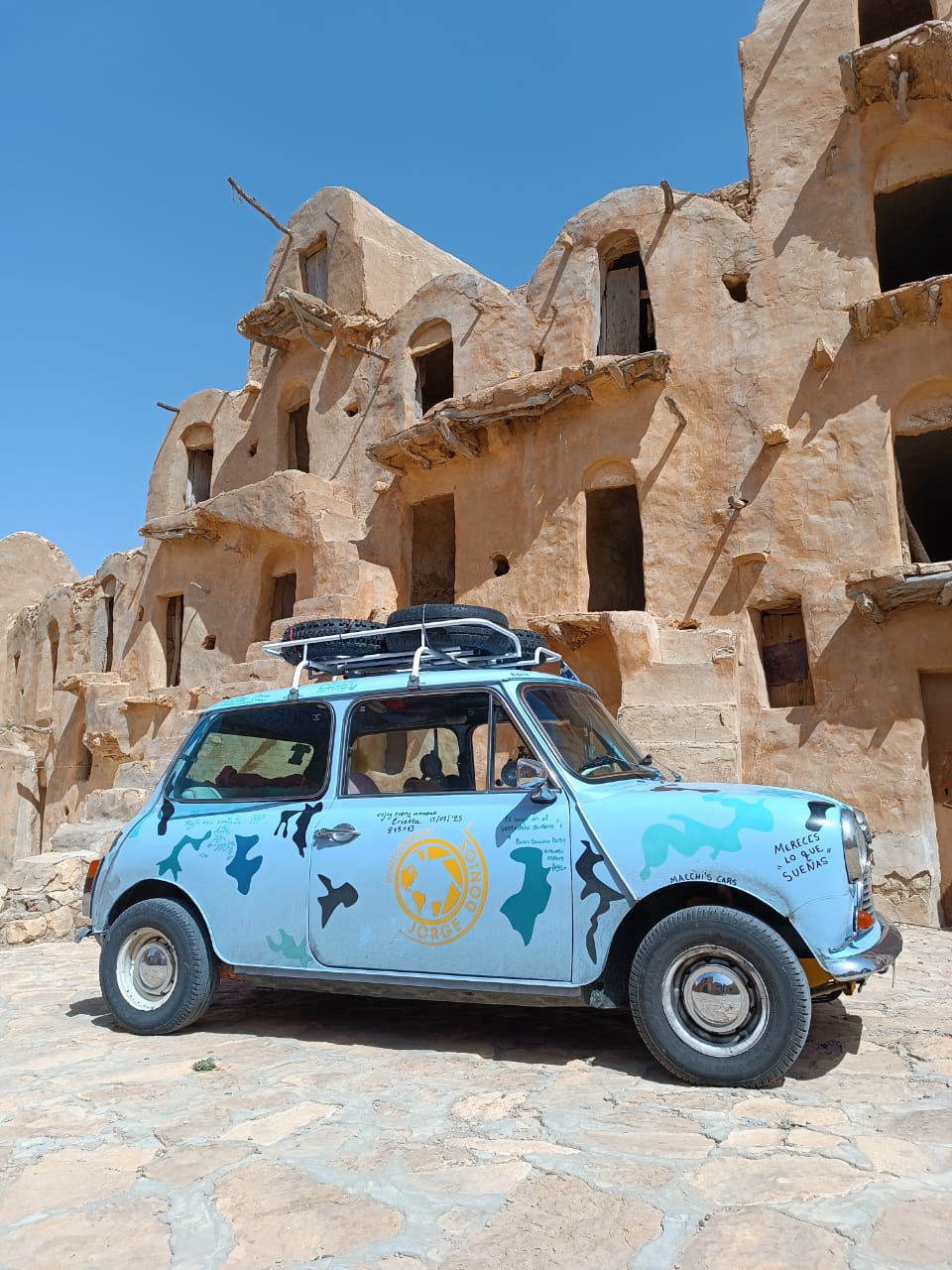 Κάπως έτσι, ξεκίνησε από Θεσσαλονίκη και μέσα σε 50 μέρες πήγε Ηγουμενίτσα, Μπρίντιζι, Σικελία και Τύνιδα, με τελικό προορισμό την έρημο Σαχάρα, και ξανά πίσω. 7.500 χιλιόμετρα με ένα παλιό Mini Cooper!