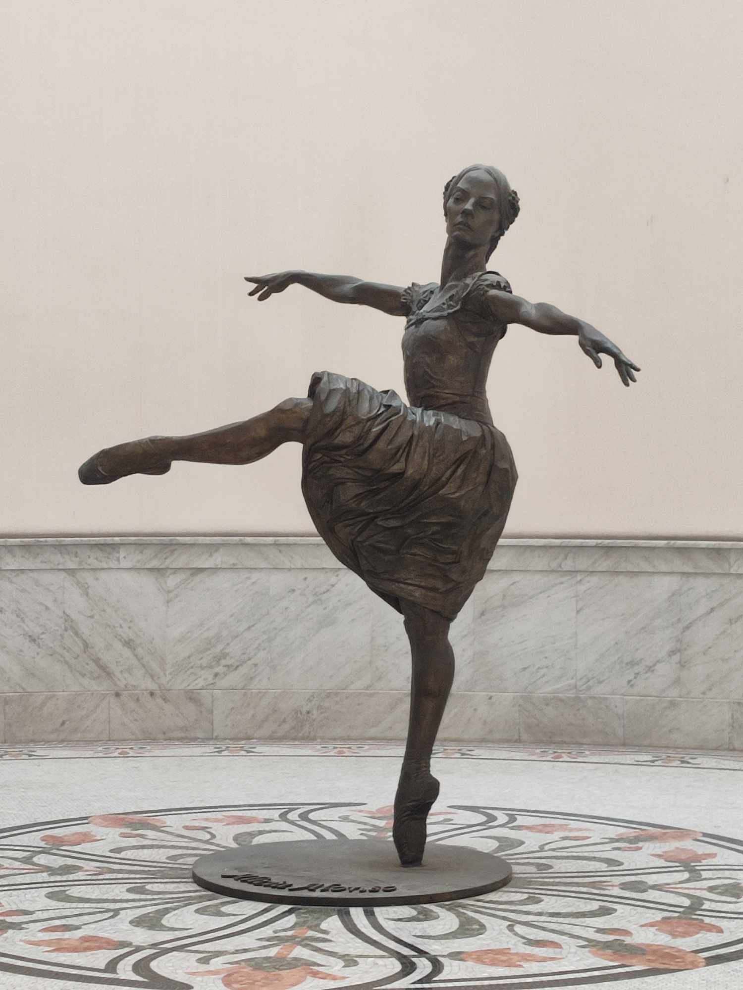 Το άγαλμα της περίφημης χορεύτριας Αλίσια Αλόνσο, που έκανε γνωστό τον χορό στην χώρα, φιγουράρει σε μια χορευτική κίνηση στην είσοδο του θεάτρου.