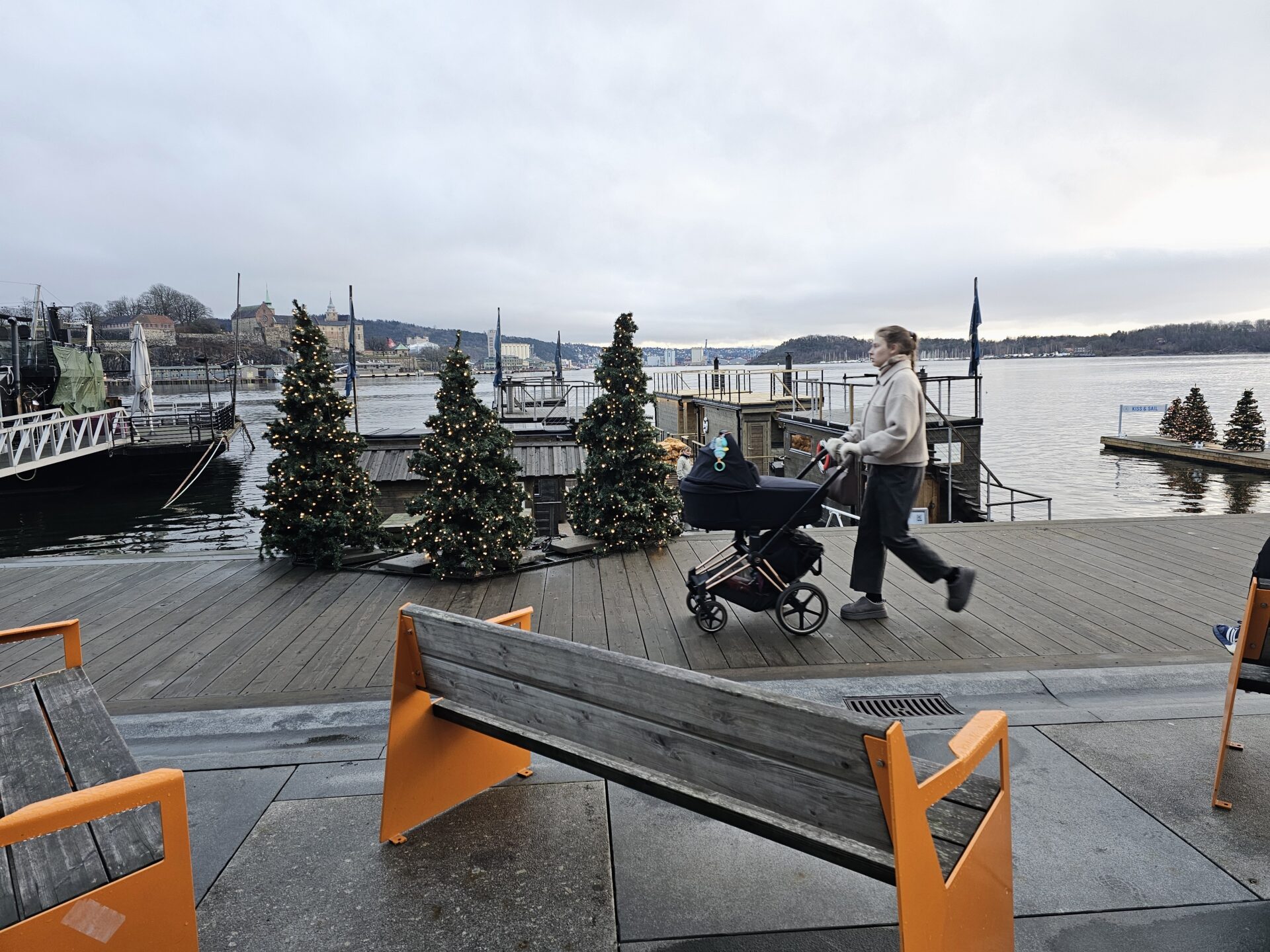 Εδώ θα ρθείς να περπατήσεις πάνω στο ξύλινο deck δίπλα στο φιόρδ και να καθίσεις στα παγκάκια, που είναι βαμμένα σε αυτό το πανέμορφο έντονο πορτοκαλί χρώμα- signal orange – που με ενθουσίασε. Η προβλήτα του Aker Brygge είναι το παραλιακό πέρασμα, ένα βασικό κομμάτι της αρχιτεκτονικής αφήγησης της περιοχής και ένας από τους πιο πετυχημένους αστικούς δημόσιους χώρους του Όσλο.