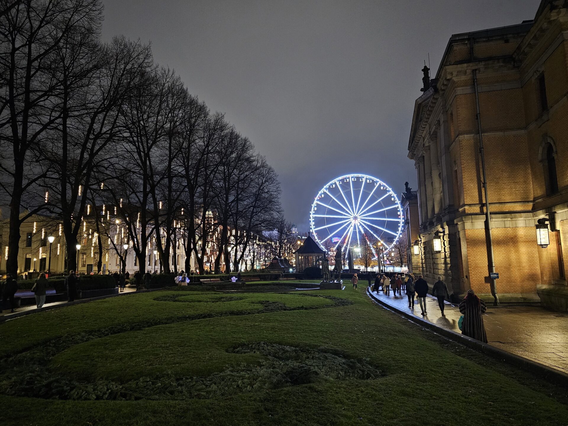 Στο κέντρο της αγοράς υπάρχει και ένα παγοδρόμιο που μπορείς να κάνεις πατινάζ δωρεάν αν έχεις τα δικά σου παγοπέδιλα. Αν ανέβεις στην μεγάλη ρόδα θα έχεις πανοραμική θέα του Όσλο και καλύτερη αίσθηση του κρύου.