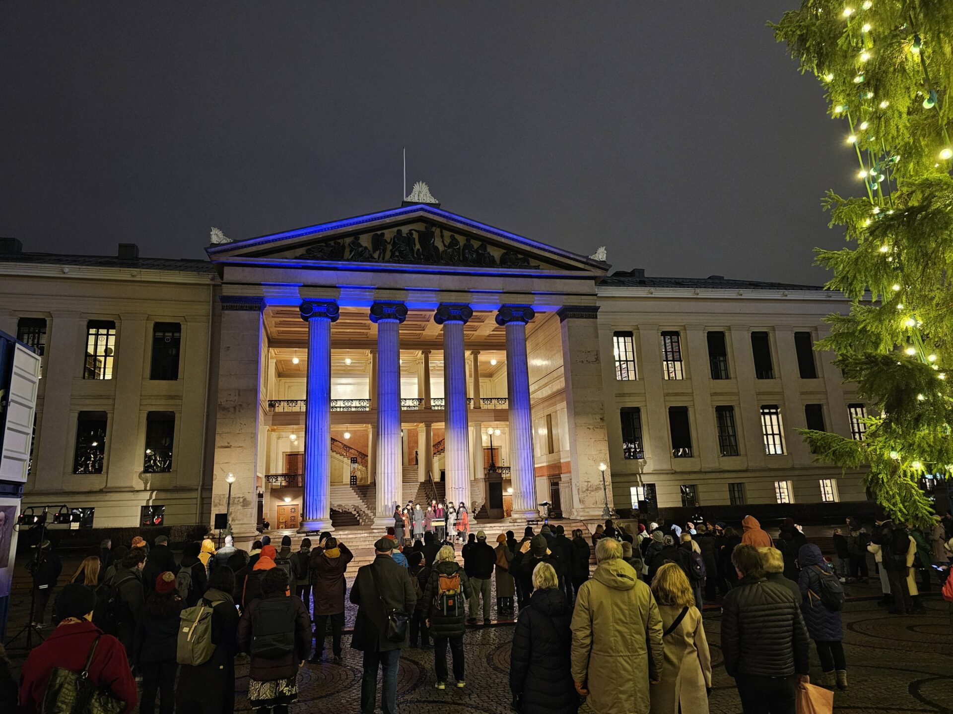 Οι χορωδίες στον εξωτερικό χώρο είναι μέσα στην παράδοση του Όσλο. Τούς αρέσει να τραγουδούν έξω, χωρίς σκηνή, μπροστά σε θεσμικά κτίρια με τον κόσμο όρθιο, σιωπηλό, σαν να συμμετέχει άτυπα.