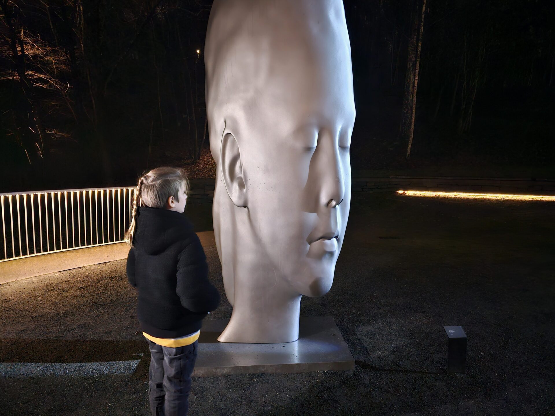 Εδώ ο Panos στέκεται μπροστά στο γλυπτό Chloe του Ισπανού καλλιτέχνη Jaume Plensa. Ο Panos διάλεξε αυτό το γλυπτό γιατί του δίνει μια εσωτερική ηρεμία μιας και είναι ένα παιδί με υπερβολική ενέργεια. Το γλυπτό από ανοξείδωτο ατσάλι είναι ένα πρόσωπο με κλειστά μάτια, που μοιάζει δυσδιάστατο γιατί έχει μικρό βάθος. Έτσι δεν ζητά να το περπατήσεις γύρω του, αλλά να σταθείς μόνο απέναντί του και να βιώσεις ηρεμία, στοχασμό και σιωπή. Η έκφραση της Chloé είναι σαν να βλέπεις κάποιον σε διαλογισμό, σου δίνει μια πρόταση για να διαλογιστείς μέσα στη φύση ή όπου αλλού θέλεις.
