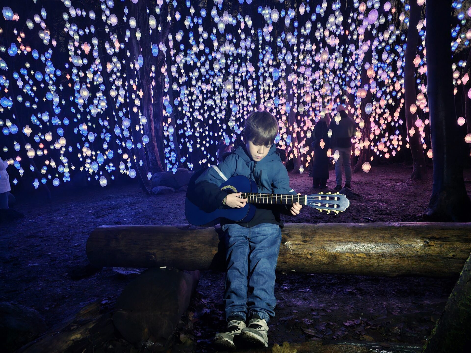 Για τον Alki αυτό είναι ένα υπέροχο σκηνικό, κάτι σαν ‘’stage lighting’’ που τον μάγεψε και ήθελε να παίζει εδώ μπροστά την κιθάρα του και να φτιάχνει δικούς του ήχους, ανάλογα με το φώς που αλλάζει χρώματα. Από πολύ μικρός έδειξε την ευαισθησία του στην μουσική τραγουδώντας και χτυπώντας τον ρυθμό που άκουγε. Ξέρει πάρα πολλά τραγούδια με αγαπημένους τους Queen.