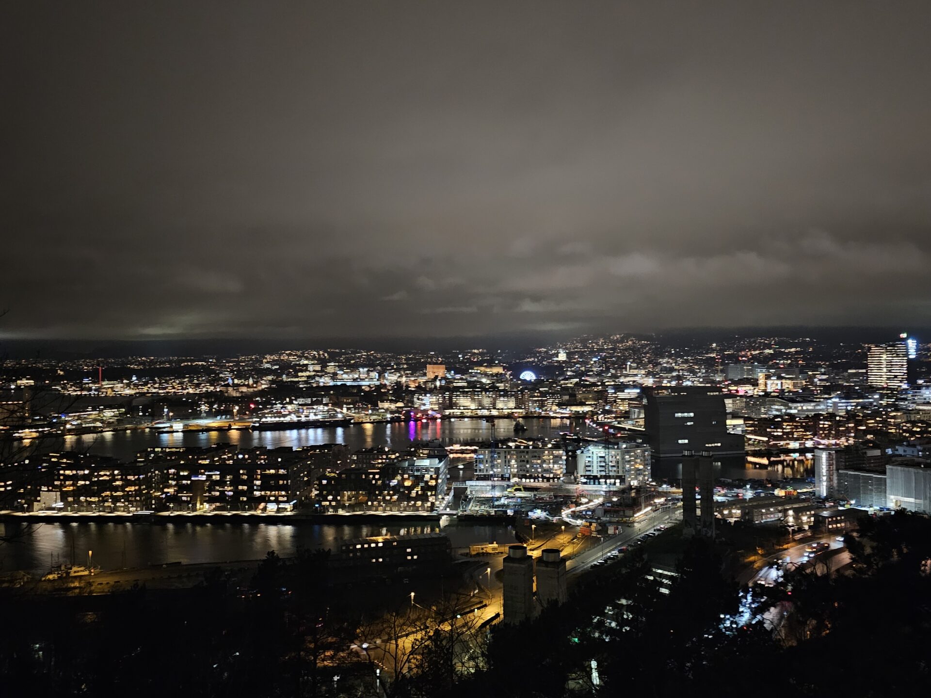 Από ψηλά το Όσλο την νύχτα δεν δείχνει μεγαλούπολη, μοιάζει μικρότερο. Τα φώτα είναι χαμηλά, όχι επιδεικτικά, το φιόρδ λειτουργεί σαν μαύρος καθρέφτης που απορροφά τον θόρυβο, ενώ ο ουρανός είναι βαρύς, χαμηλός και λίγο πιεστικός. Στη Νορβηγία, το σκοτάδι δεν πολεμιέται, κατοικείται.
