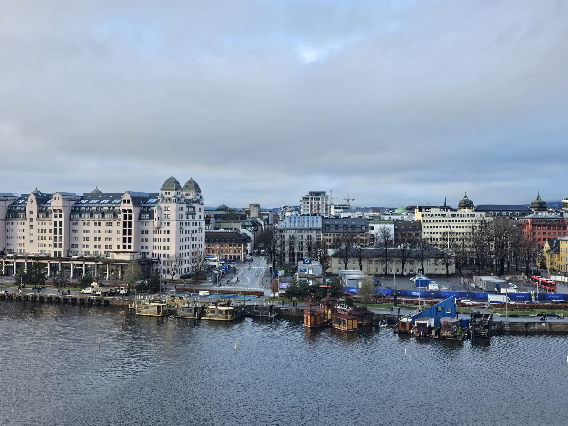 Αυτά τα δύο κτίρια κυριαρχούν στο κέντρο της πόλης δίπλα στο φιόρδ. Στέκονται αντικριστά σαν δύο διαφορετικές προτάσεις για το τι σημαίνει σύγχρονη πόλη, αρχιτεκτονικά και συναισθηματικά.