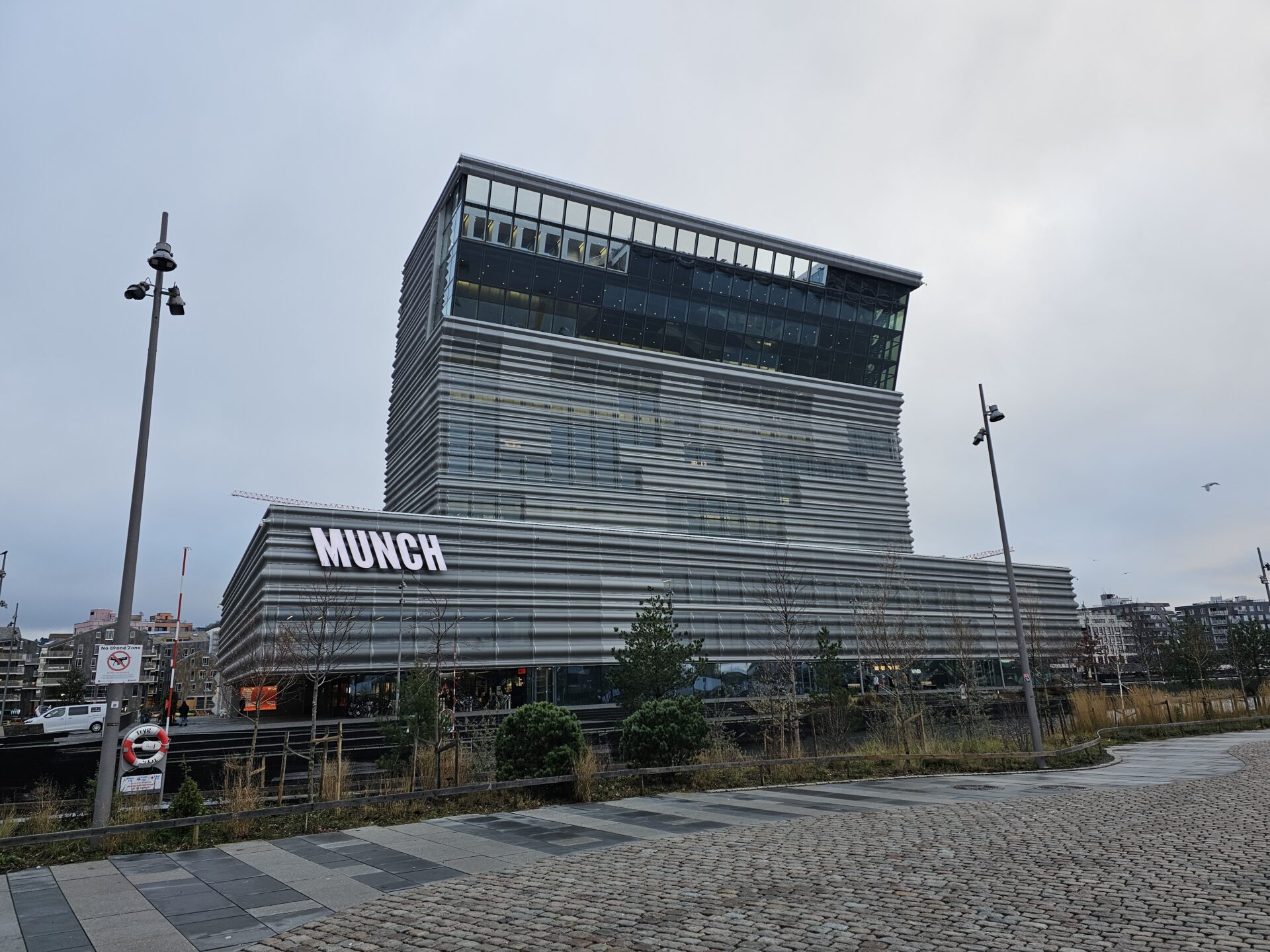 Δίπλα το μουσείο Μουνκ στέκεται όρθιο και εσωστρεφές. Ένας σκοτεινός, γκριζωπός όγκος που μοιάζει να στρέφεται ελαφρά προς το φιόρδ, σαν να παρατηρεί την πόλη με απόσταση. Η αρχιτεκτονική του είναι κάθετη, σχεδόν αυστηρή και δημιουργεί ένα αίσθημα έντασης και εσωτερικότητας, ίσως αντάξιο της ψυχικής φόρτισης του ίδιου του Μουνκ.