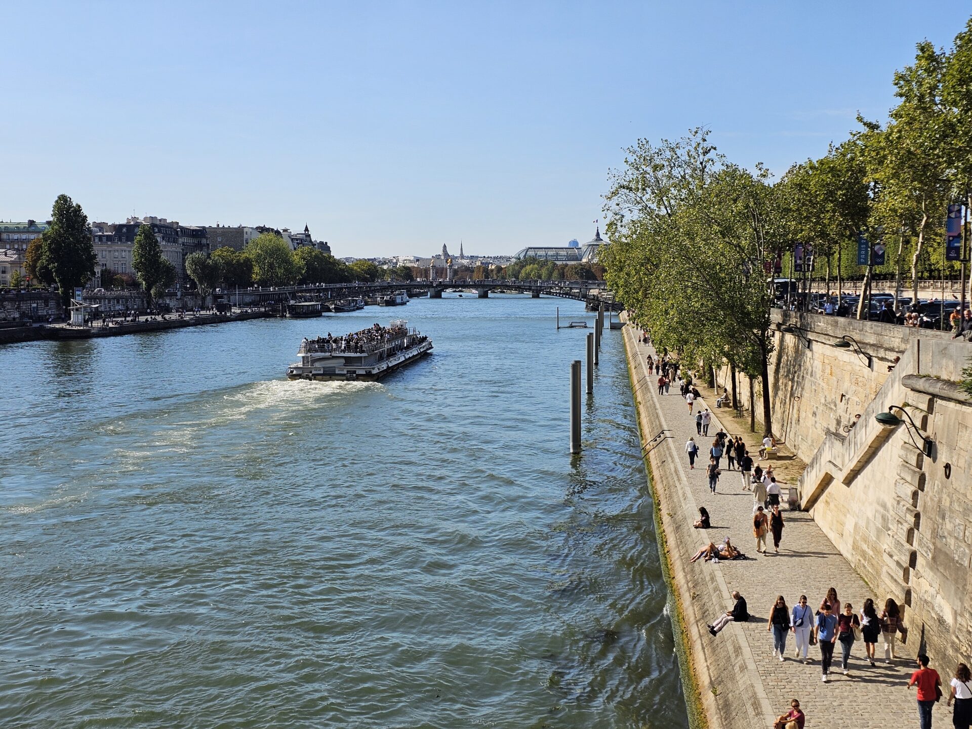 Καθίσαμε με την Αρετή δίπλα στον “ καθαρό “ Σηκουάνα εκεί που είναι αραγμένα τα παλιά πλοία που διαμορφώθηκαν σε κατοικίες με κήπους, πίνοντας ένα βιολογικό λευκό κρασί Cotes Du Rhone, δίχως θειώδη , με φρέσκα αρώματα και τιμή 7 €. Είχαμε περπατήσει όλο το κέντρο του Παρισιού και συζητούσαμε για την βιωσιμότητα των Ολυμπιακών αγώνων, το πολύ βαρύ παρελθόν τους αλλά και το μέλλον τους, που θα πρέπει να είναι πλέον σε άλλη βάση.
