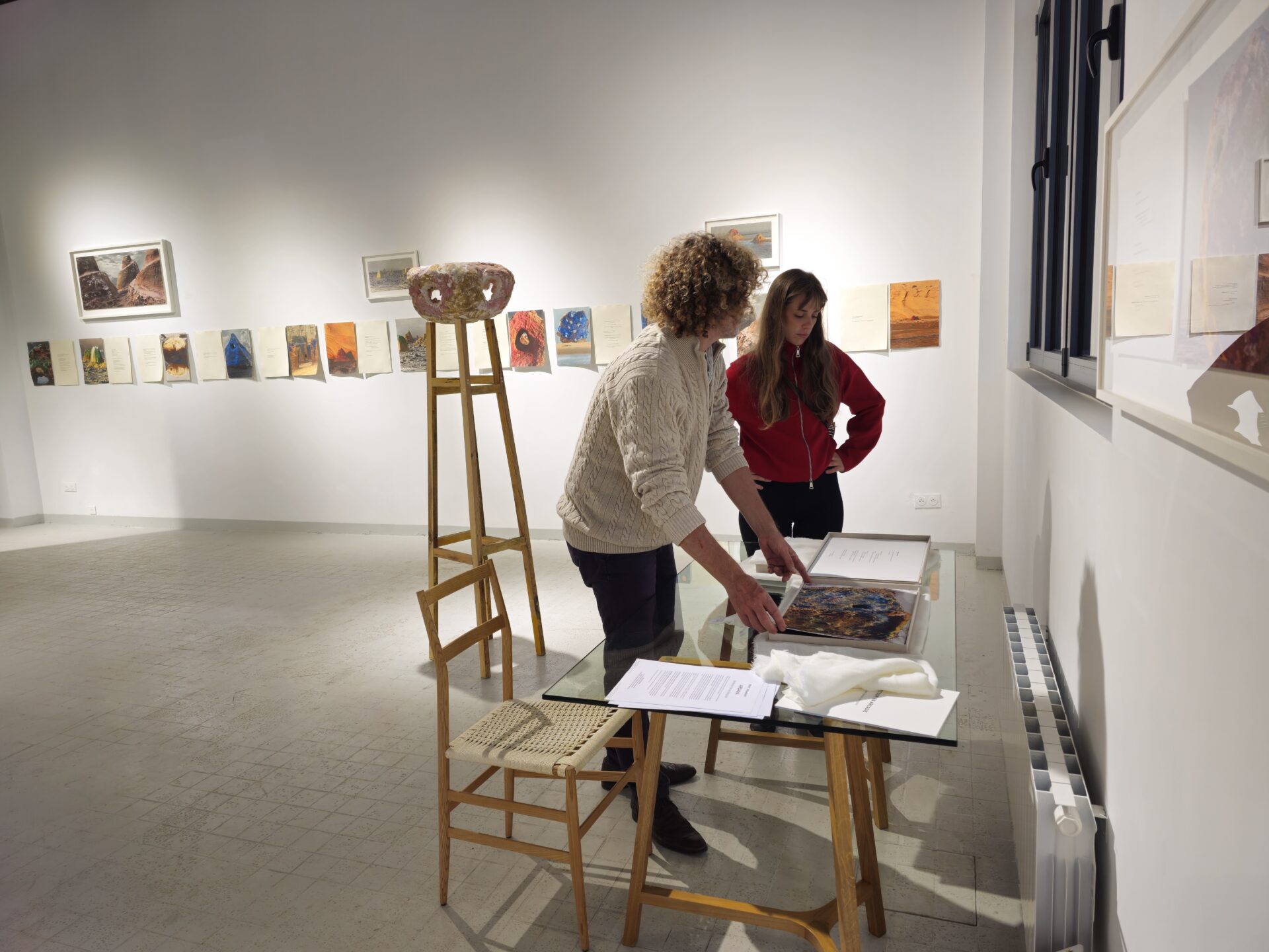 Στην άλλη έχει εκθέματα βασισμένα στο βιβλίο του. Αποτελούνται από τα τμήματα του βιβλίου του, δηλαδή από τις μεμονωμένες εικόνες και τα κείμενα του καλλιτεχνικού του βιβλίου, τοποθετημένα στον χώρο της έκθεσης.
