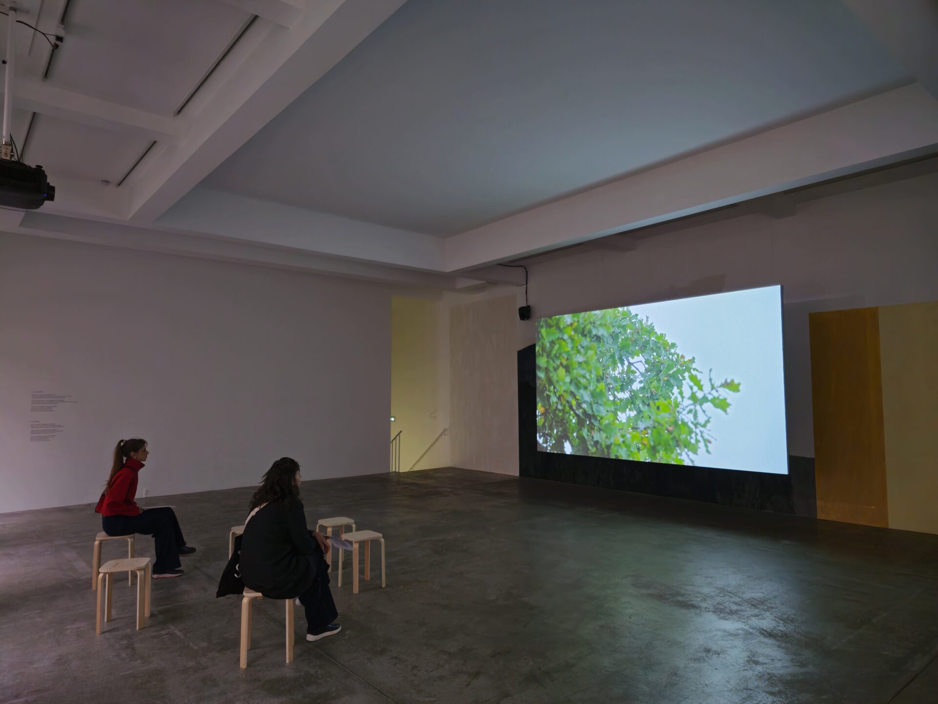 Στην αίθουσα της Marian Goodman, το φως είναι υποτονικό και η κίνηση επιβραδύνεται. Συνήθως έχει λίγο κόσμο. Οι προβολές ξεδιπλώνονται σε μεγάλες οθόνες, σαν πίνακες που αναπνέουν αργά. Κάθεσαι σε ένα ξύλινο σκαμπό και σιγά σιγά μπαίνεις στην ροή της εικόνας. Δέντρα που λικνίζονται, νερά που πάλλονται, σώματα που μοιάζουν να συγχωνεύονται με τη φύση, το βλέμμα χάνει το μέτρο του ανθρώπου και αρχίζει να ακολουθεί άλλους ρυθμούς, πιο ήπιους, πιο βαθύς.