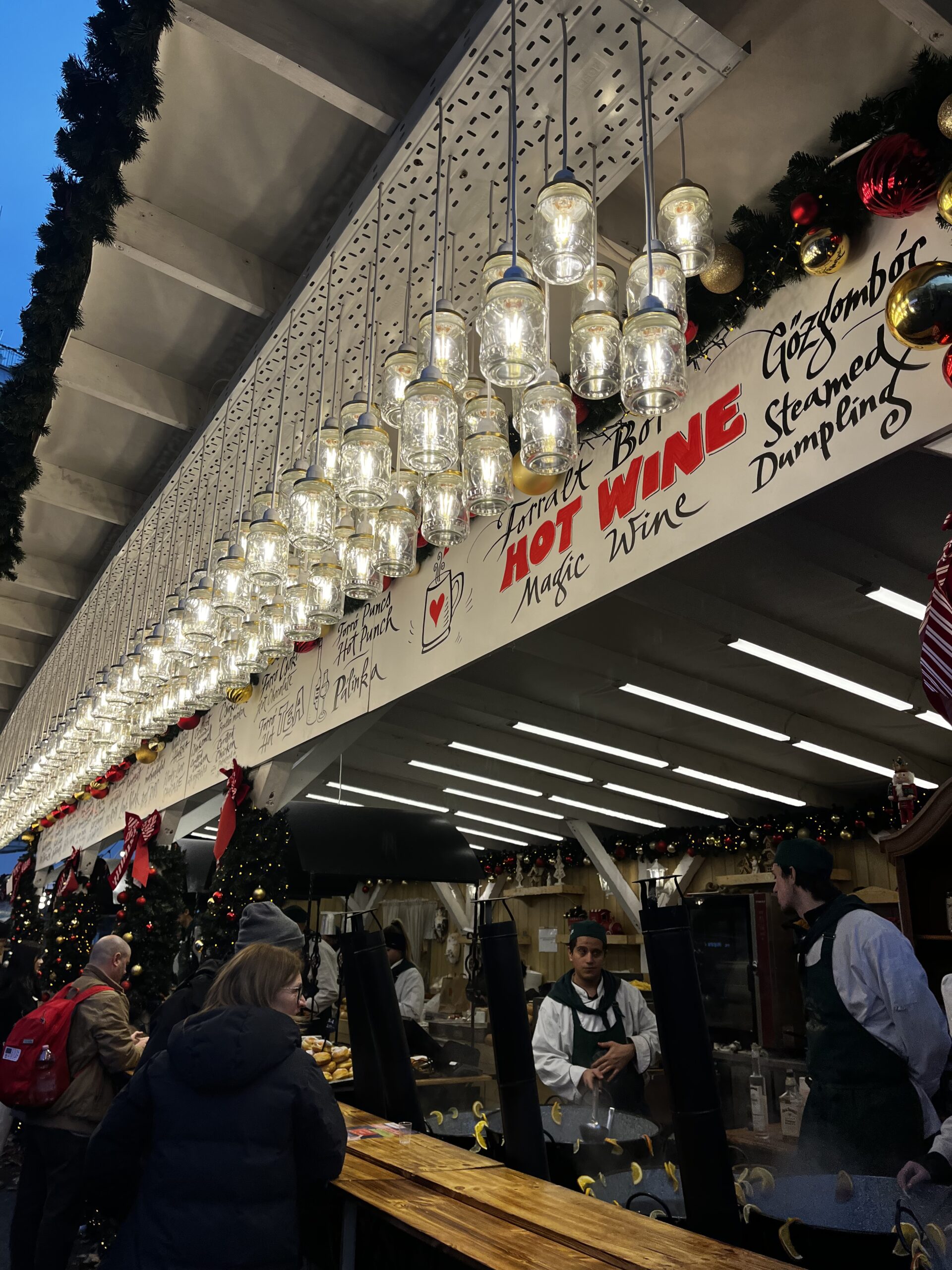 Κάναμε την πρώτη βόλτα μας στο πιο κεντρικό σημείο της Βουδαπέστης, περπατώντας στα districts και κάνοντας τη πρώτη στάση στην πλατεία Vorosmarty, όπου συναντήσαμε την πρώτη Χριστουγεννιάτικη αγορά. Οι μυρωδιές από το ζεστό κρασί, τη ζεστή σοκολάτα, τα γλυκά και αλμυρά εδέσματα, μας έσπασαν τη μύτη και φυσικά, δεν αντισταθήκαμε από το να δοκιμάσουμε τις παραδοσιακές τους λιχουδιές, με τα λουκάνικα και τα σνίτσελ να γίνονται απευθείας οι αδυναμίες μας!