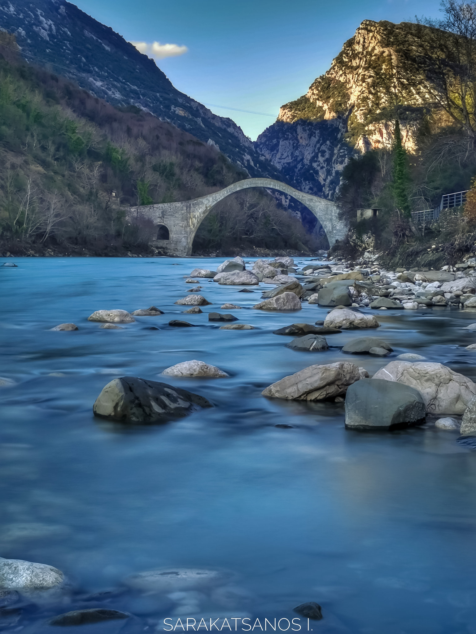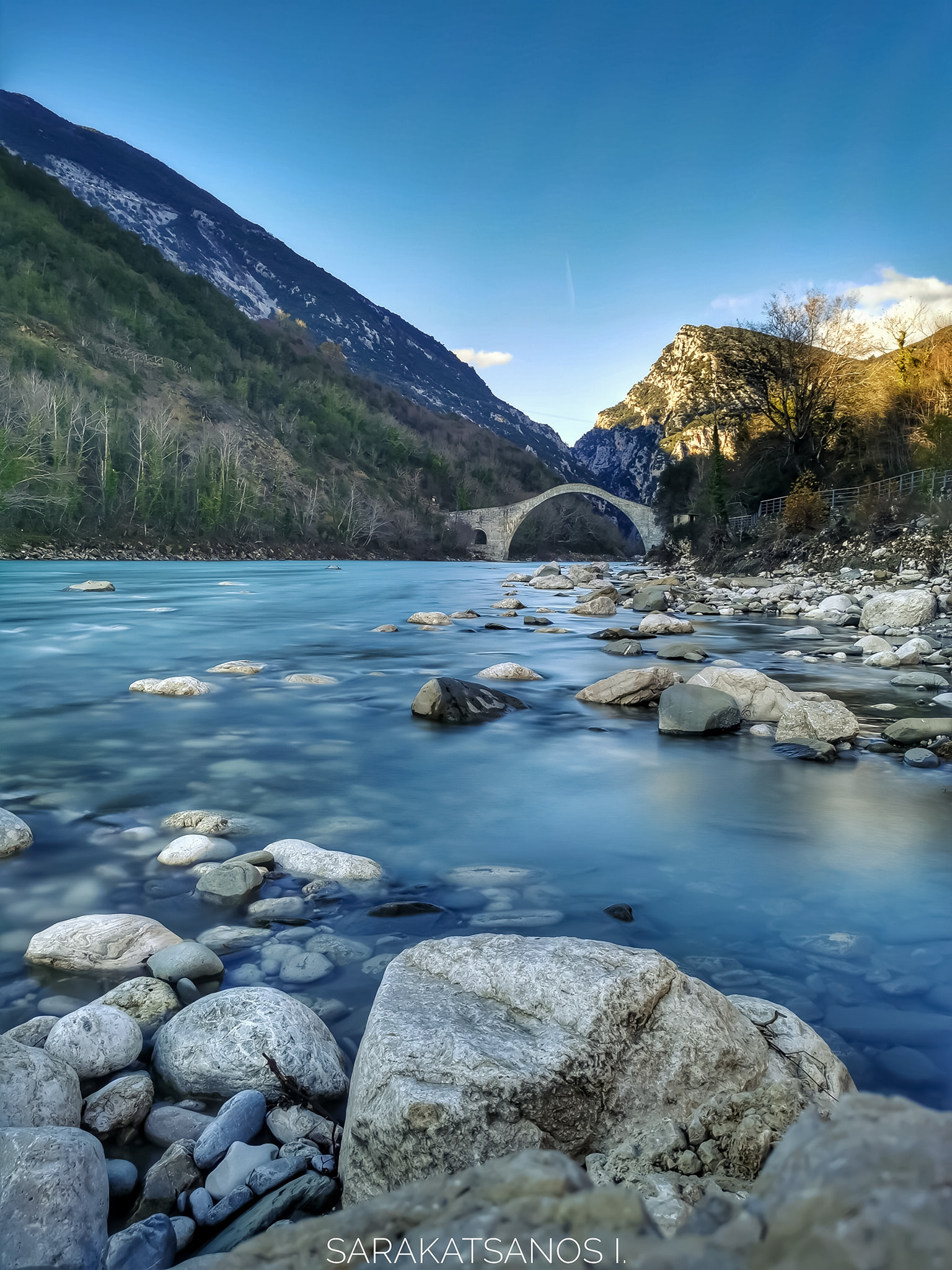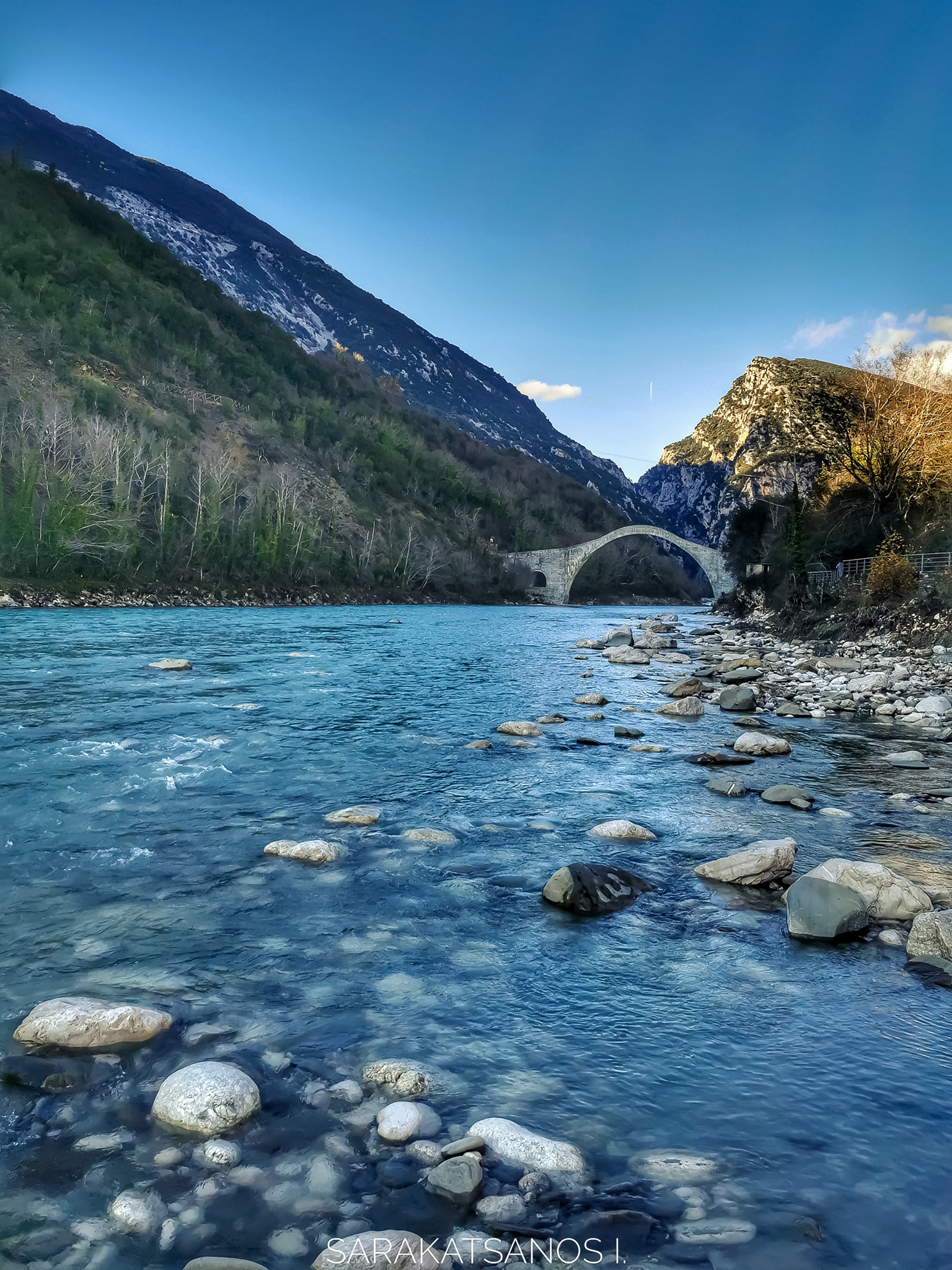 Ο φωτογραφικός φακός του Γιάννη Σαρακατσάνου μας ταξιδεύει στο ιστορικό Γεφύρι της Πλάκας στον Άραχθο Ποταμό, που συνδέει τα Τζουμέρκα με τα Κατσανοχώρια και κατ’ επέκταση τα Ιωαννίνα με την Άρτα.