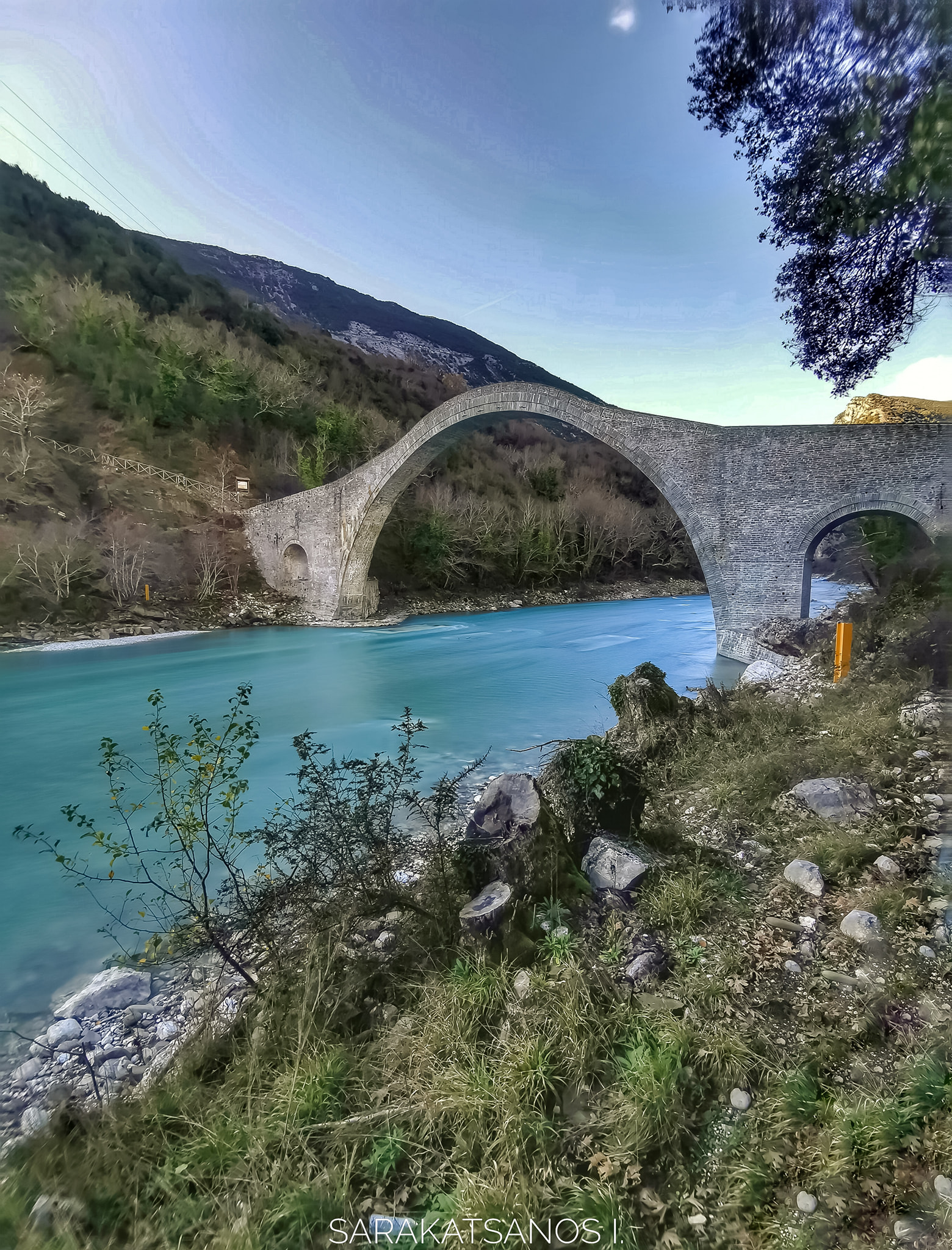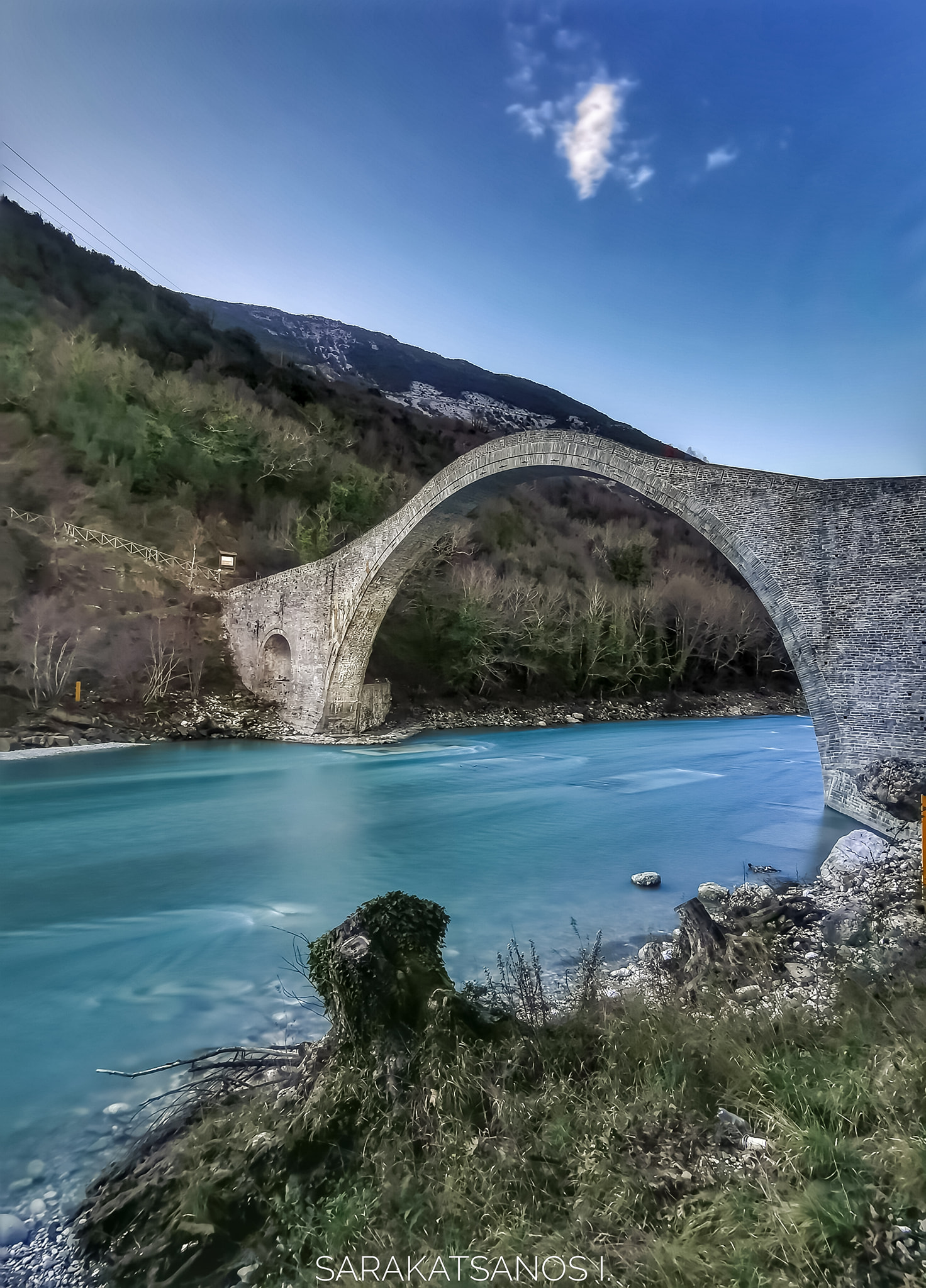 Στα κλικ του, καταγράφονται μαγικές εικόνες από το πέτρινο τοξωτό γεφύρι που χτίστηκε το 1866 και επανακατασκευάστηκε το 2019.