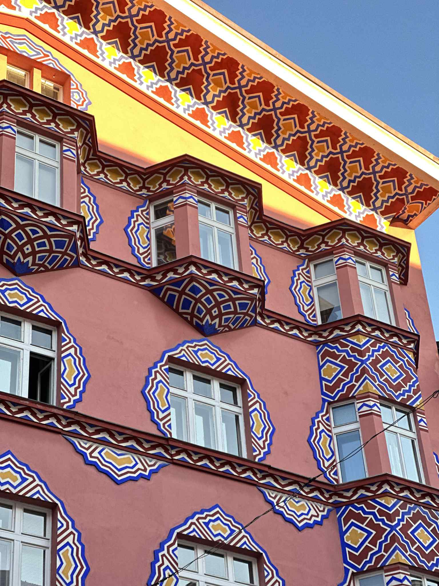 Ο τελικός μας προορισμός ήταν το σπουδαίο σπίτι, του αρχιτέκτονα Ιβάν Βούρνικ, το οποίο θεωρείται ένα από τα καλύτερα παραδείγματα της σλοβενικής εθνικής αρχιτεκτονικής και πράγματι είναι μαγικό με ροζ αποχρώσεις και γεωμετρικά σχέδια να κοσμούν την εξωτερική του πλευρά. Η πόλη είναι μικρή και εύκολα περπατήσιμη, αποτελείται από δεκάδες πεζόδρομους και πολύ πράσινο, μπορείς να την “ρουφήξεις” απ’ άκρη σ’ άκρη μέσα σε μία μέρα, μία μικρή παραμυθούπολη στην Ευρώπη που λάμπει.