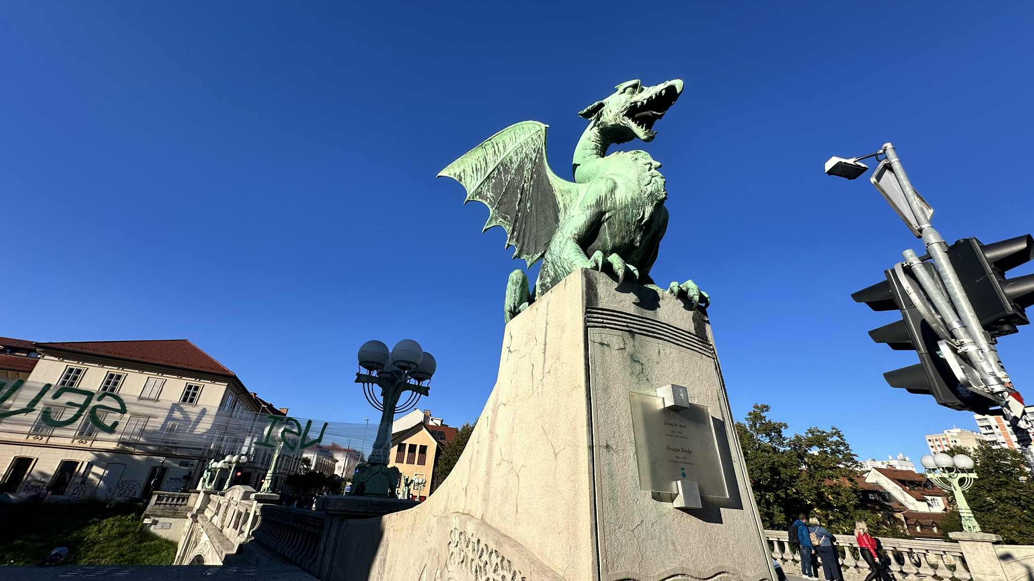 Με την περιπλάνηση ανάμεσα στα σπουδαία αρχιτεκτονικά κτίρια, το μάτι μας θα έπεσε επάνω στην Γέφυρα του Δράκου, ένα καταπληκτικό δείγμα art nouveu αρχιτεκτονικής και σύμβολο της πόλης. Σύμφωνα με τους μύθους των αρχαίων Ελλήνων τον δράκο αυτό σκότωσε ο Ιάσωνας κατά τη διάρκεια της Αργοναυτικής εκστρατείας μπαίνοντας με την μυθική του Αργώ στην αρχαία πόλη της Λιουμπλιάνα.