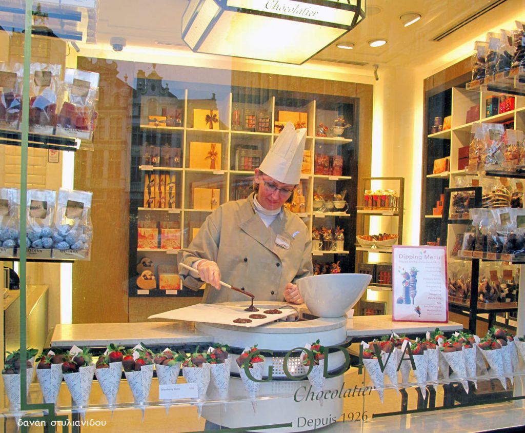 Απόλαυσε την απόλυτη βέλγικη σοκολάτα στο Godiva Chocolatier! Από το 1926, φτιάχνει ασταμάτητα σοκολατένιες λιχουδιές! Παράδεισος!… Διεύθυνση: Grand Place 21/22