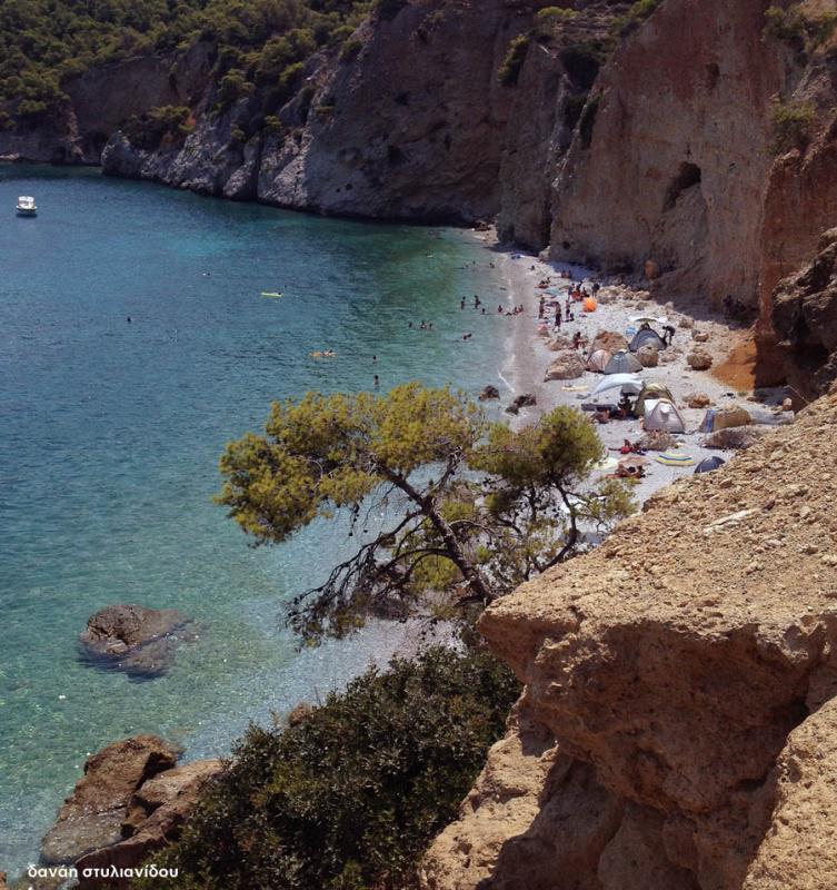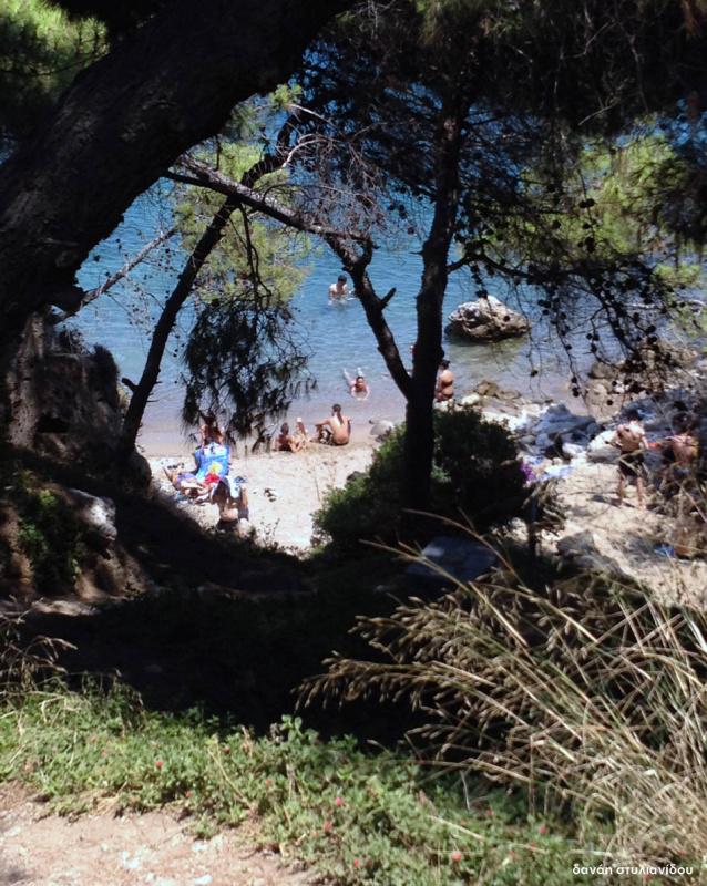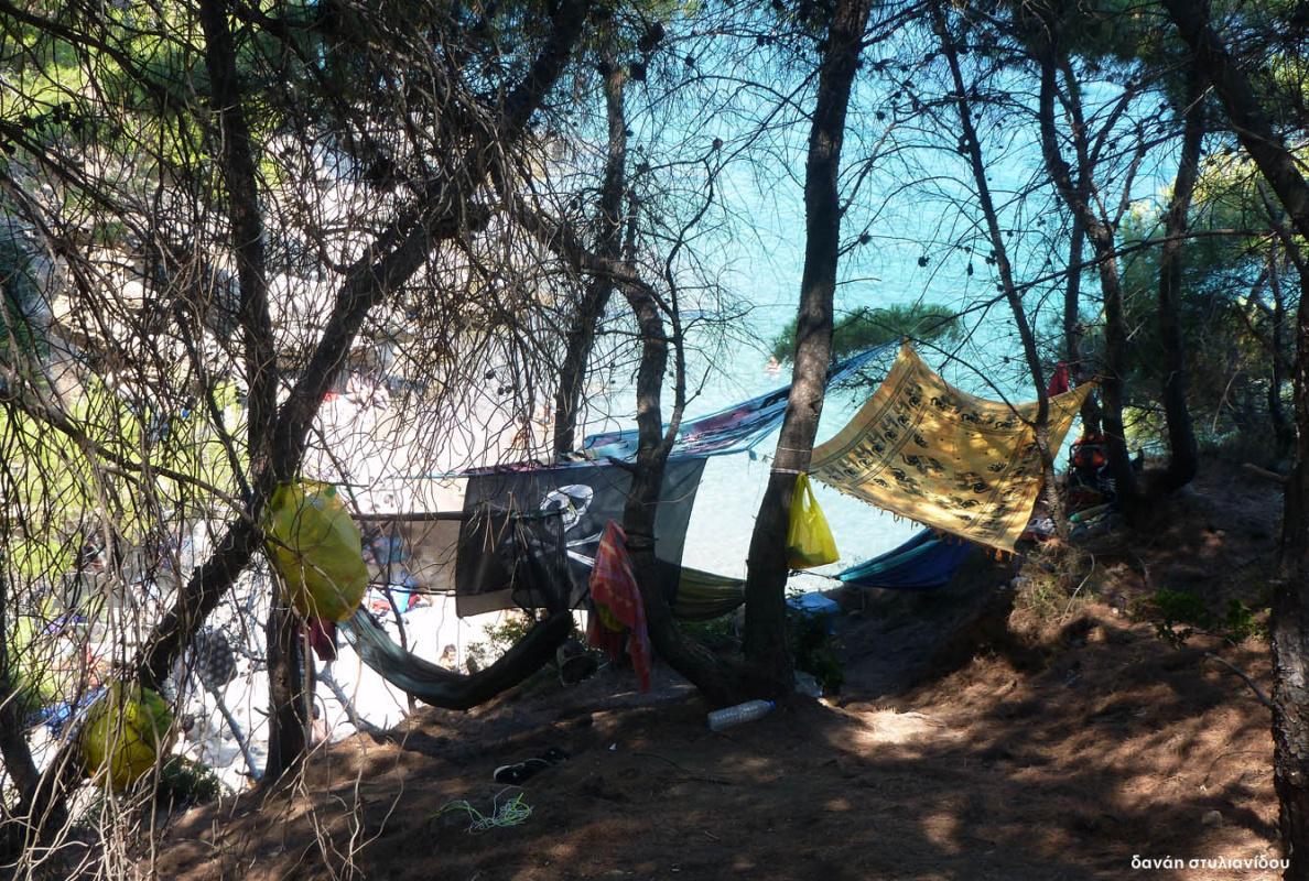 Η Χαλκιάδα είναι μια από τις απόμερες παραλίες, όχι πολύ μακριά από το Μεγαλοχώρι, που μου αρέσουν. Η πρόσβαση δεν είναι ακριβώς εύκολη, αλλά τα νερά της και το δάσος γύρω της δίνουν ρέστα. Στο δάσος πάνω από τη Χαλκιάδα, όπως και στην παραλία, θα δεις σκηνές και ελεύθερους κατασκηνωτές. Πολύ κλασσικό μέρος για ελεύθερο camping στο Αγκίστρι. Απαγορεύεται, αλλά αν σου πω ότι δε συμβαίνει, θα σου πω ψέματα. Η συνείδηση των ελεύθερων κατασκηνωτών, πάντως, στο συγκεκριμένο σημείο, είναι άξια λόγου. Είδα αρκετές hand made ταμπέλες με προτροπές όπως ‘’Όχι σκουπίδια εδώ’’.