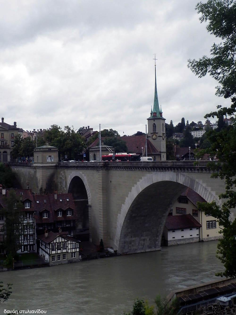 Μέσα στον ψόφο και μούσκεμα, είχαμε την τύχη η φίλη μου και εγώ, να έχουμε φίλους στην Ελβετία οι οποίοι εκτός του ότι μας έντυσαν, μας περπάτησαν και μας σύστησαν στη χώρα. Αυτή η ζέστη της φιλοξενίας και της φιλίας, ζέστανε την καρδιά μου και έχω σήμερα γλυκές αναμνήσεις από εκείνο το ταξίδι, παρά τα ευτράπελα του καιρού και ενός τρένου που είχαμε χάσει κατά τη παραμονή μας στην χώρα του πράσινου και της ακρίβειας. Επισκέφθηκα πολλές ελβετικές πόλεις και χωριά, αλλά σήμερα το άρθρο είναι αφιερωμένο μόνο στη Βέρνη.
