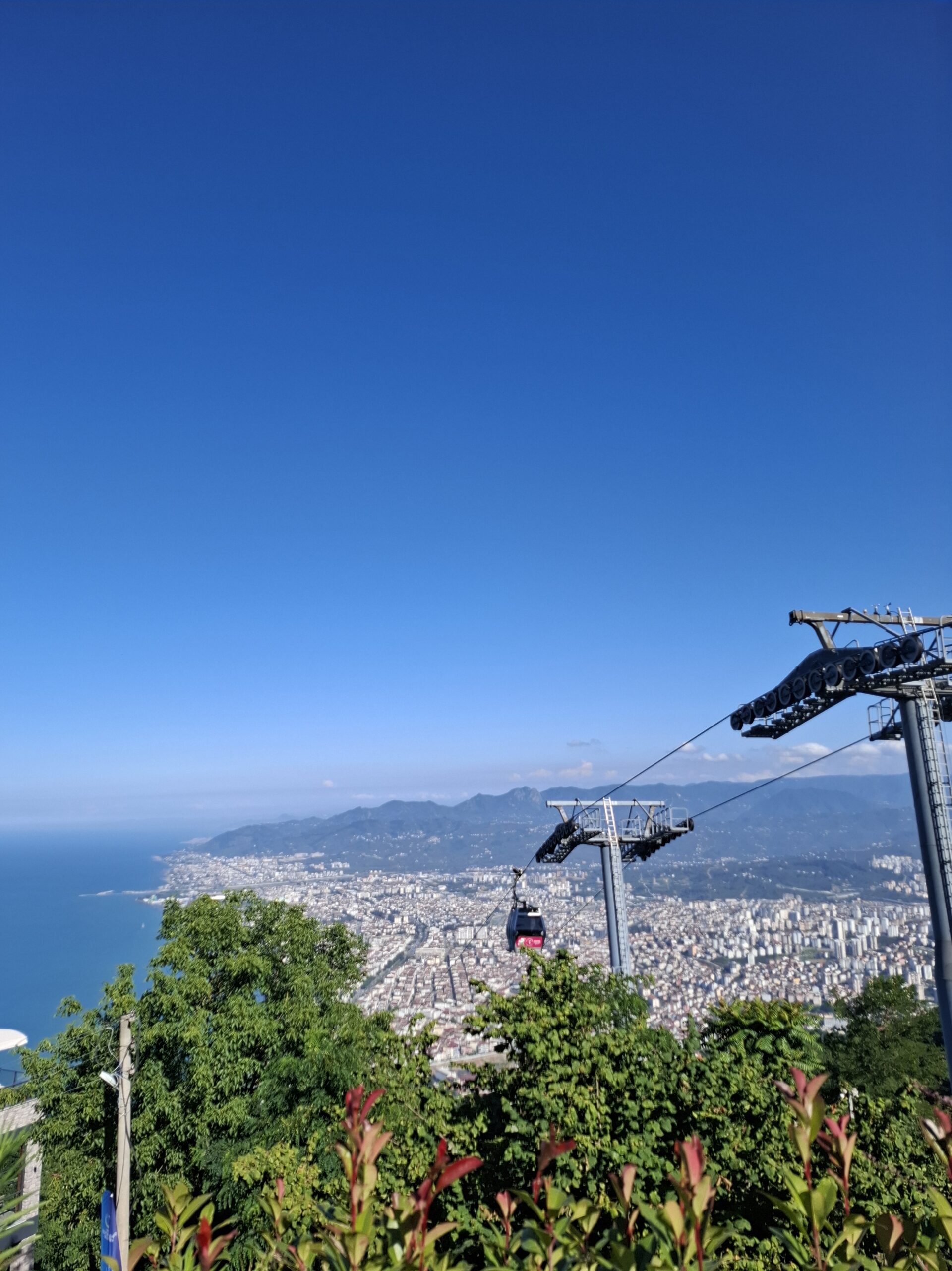 Πέρα από την εντυπωσιακή θέα προς την πόλη και τη θάλασσα το βλέμμα καρφώθηκε στην άλλη πλευρά, τις Ποντικές Άλπεις. Μπροστά μας απλωνόταν μια οροσειρά γεμάτη πυκνή βλάστηση, ένα μαγευτικό τοπίο που δεν είχα την ευκαιρία να δω αλλού μέχρι τώρα. Για τον λόγο αυτό χαρακτηρίζεται η οροσειρά γεωγραφικά ως «Άλπεις» καθώς η βλάστηση παραπέμπει σε αλπικά τοπία γεμάτα ψηλά δέντρα όπου ανάμεσα τους αναπτύσσονται λίμνες και οροπέδια στα οποία υπήρχαν τα λεγόμενα παρχάρια. Στη συνέχεια κατεύθυνση για διανυκτέρευση στην Κερασούντα (Giresun).