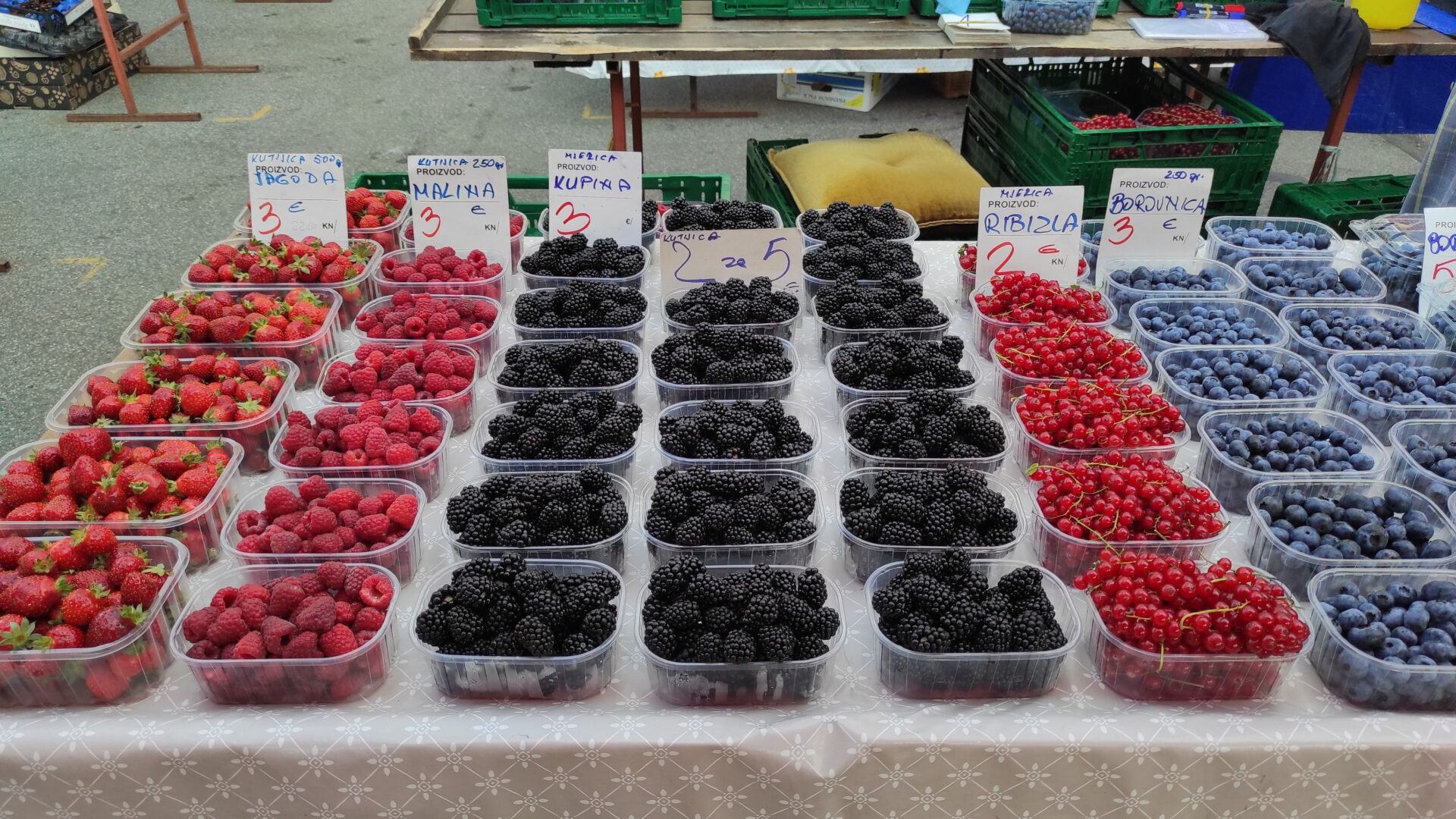 Η αγορά λοιπόν του Ντόλατς που βρίσκεται εκεί από το 1930, συγκεντρώνει αγρότες-παραγωγούς από τις γύρω περιοχές της κροάτικης υπαίθρου που έρχονται για να πουλήσουν τα φρέσκα φρούτα και τα λαχανικά τους και όχι μόνο.