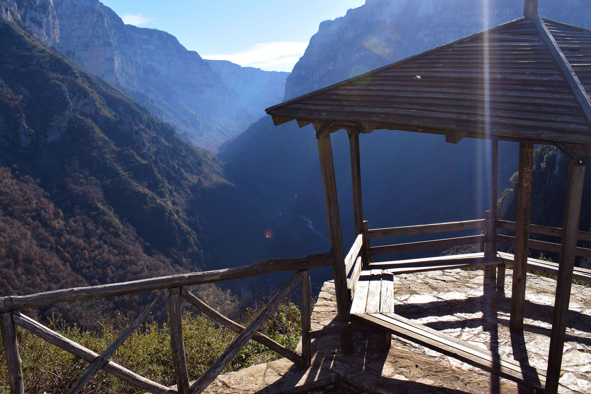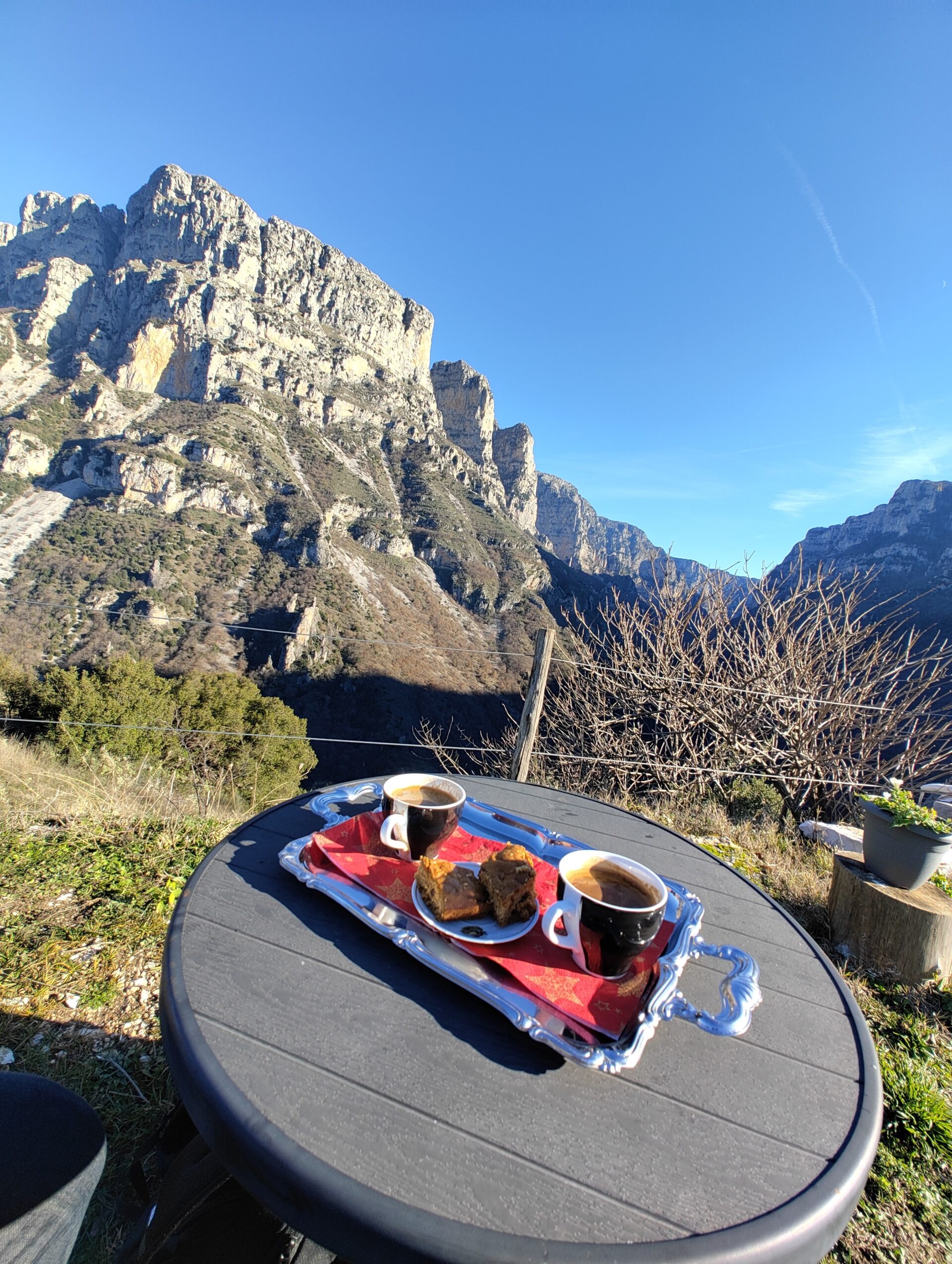 Η σύντομη πεζοπορία της προηγούμενης ημέρας, το καθαρό οξυγόνο και το χορταστικό φαγητό στο καφέ – εστιατόριο στην κεντρική πλατεία του χωριού, μας οδήγησαν στα κρεβάτια μας από πολύ νωρίς. Έτσι, την επομένη, λίγο πριν τις 7, ήμασταν ήδη ξύπνιοι για να απολαύσουμε την ανατολή του ήλιου από το κατάλυμα, να φάμε πρωινό με ντόπια προϊόντα και να κινήσουμε για το ξακουστό φαράγγι του Βίκου.