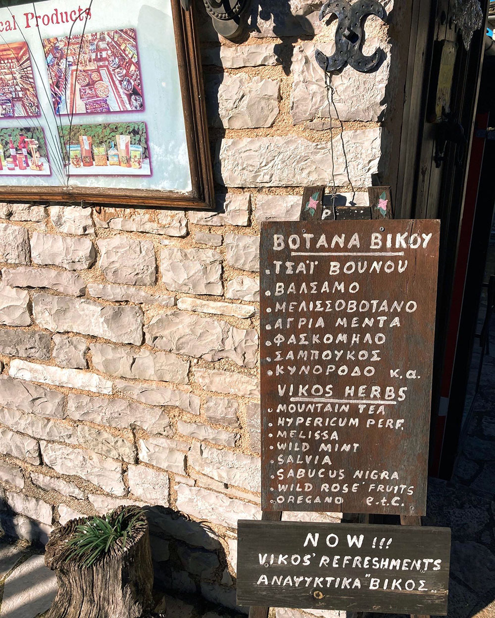 Ο κύριος Κώστας, αν και ολιγομίλητος, δεν μας έκρυψε την αγάπη του για τον τόπο του και μας συμβούλευσε να επισκεφθούμε ξανά την περιοχή, το καλοκαίρι, για να βουτήξουμε στα νερά του ποταμού. Φυσικά, δεν παραλείψαμε να αγοράσουμε και δυο πράγματα για το σπίτι. Αν και το μαγαζί του, διαθέτει σπιτικές μαρμελάδες, ντόπιο μέλι, ξυλόγλυπτα σουβενίρ και χειροποίητα κοσμήματα ( χρόνο να έχεις να τα εξερευνήσεις όλα ), εμείς περιοριστήκαμε στην αγορά βοτάνων για τσάι. Συγκεκριμένα, πήραμε ένα μίγμα μέλισσας, τσάι βουνού και άγριας μέντας.Έτσι, χορτάτοι και φορτωμένοι, ξεκινήσαμε την διάσχιση του φαραγγιού.