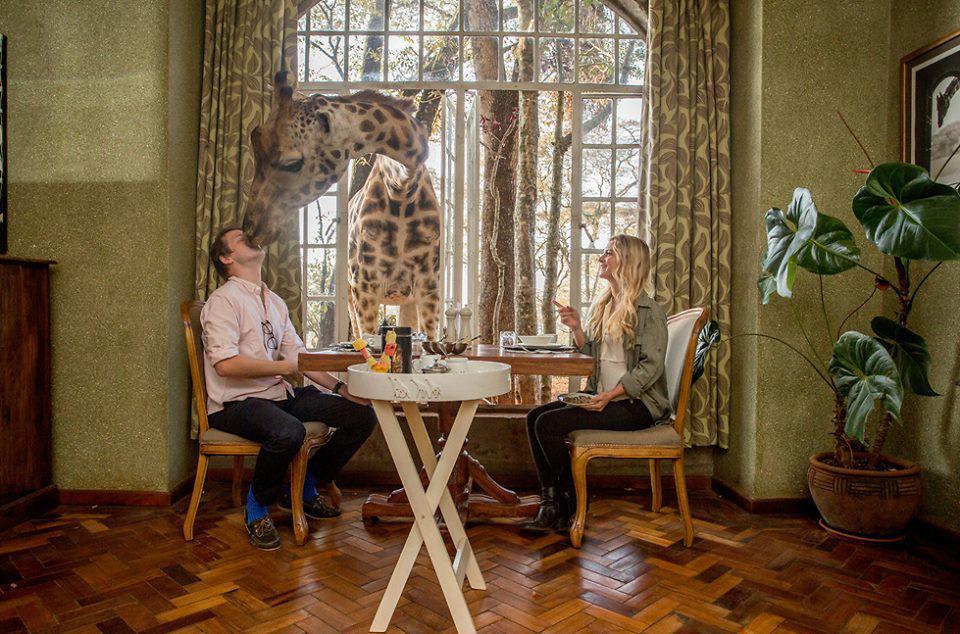 Εκεί που απολαμβάνεις αμέριμνος το πρωινό σου, μια καμηλοπάρδαλη τεραστίων διαστάσεων μπορεί να τρυπώσει το κεφάλι της μέσα από το παράθυρο και να σου κλέψει σπιρτόζικα την μπουκιά. Στο Giraffe Manor, στα προάστια του Ναϊρόμπι της Κένυας, τα τεράστια αυτά ζώα αποτελούν το σήμα κατατεθέν του ξενοδοχείου.