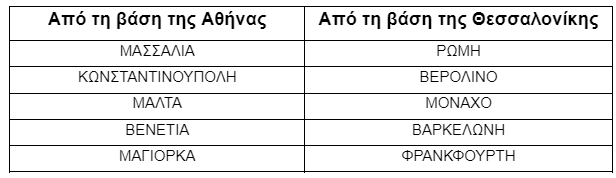 Top 5 προορισμοί εξωτερικού από τις δυο μεγαλύτερες βάσεις της Αθήνας και της Θεσσαλονίκης: