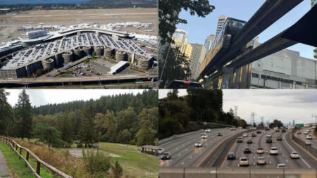Μπαίνοντας στον αυτοκινητόδρομο, συνειδητοποίησα ότι υπήρχαν 5 λωρίδες και μια λωρίδα έκτακτης ανάγκης σε κάθε πλευρά. Πολλά αυτοκίνητα, χωρίς μεγάλη κίνηση, καθώς όλοι οδηγούσαν με την ίδια ταχύτητα, 70 μίλια/110 χλμ, με ωραία ροή. Ένας περιβαλλοντικός κανόνας που ισχύει στο Σιάτλ είναι η γρήγορη λωρίδα (η 5η λωρίδα). Αν έχεις όχημα με 2 επιβάτες και άνω, μπορείς να χρησιμοποιήσεις τη γρήγορη λωρίδα. Διαφορετικά, παραμένεις στις άλλες λωρίδες, οι οποίες είναι συνήθως πιο γεμάτες. Ένα ωραίο τέχνασμα για να μην χρησιμοποιείς το αυτοκίνητό σου και να προκαλείς ατμοσφαιρική ρύπανση.