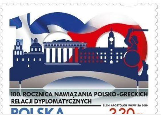 Αυτή είναι το παρακάτω γραμματόσημο το οποίο στις 30 Απριλίου 2019 τέθηκε σε κυκλοφορία ως ένα δίδυμο γραμματόσημο των Πολωνικών Ταχυδρομείων και των Ελληνικών Ταχυδρομείων ΕΛΤΑ με αφορμή την 100ή επέτειο από την εγκαθίδρυση των πολωνοελληνικών διπλωματικών σχέσεων.