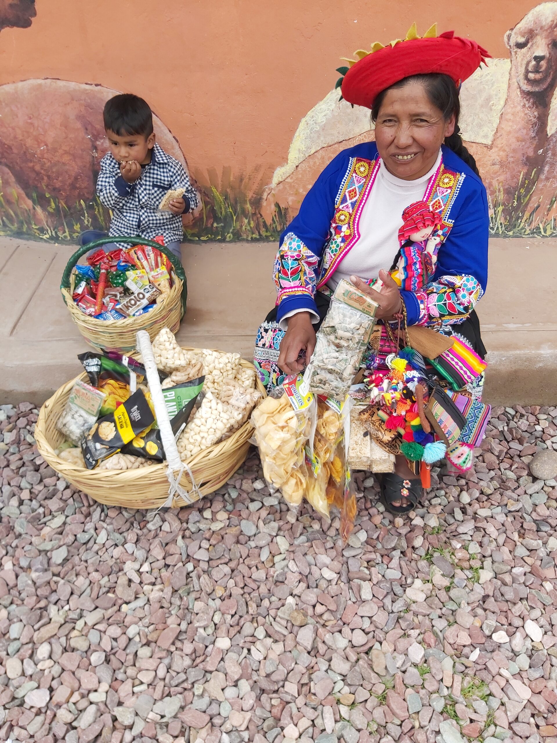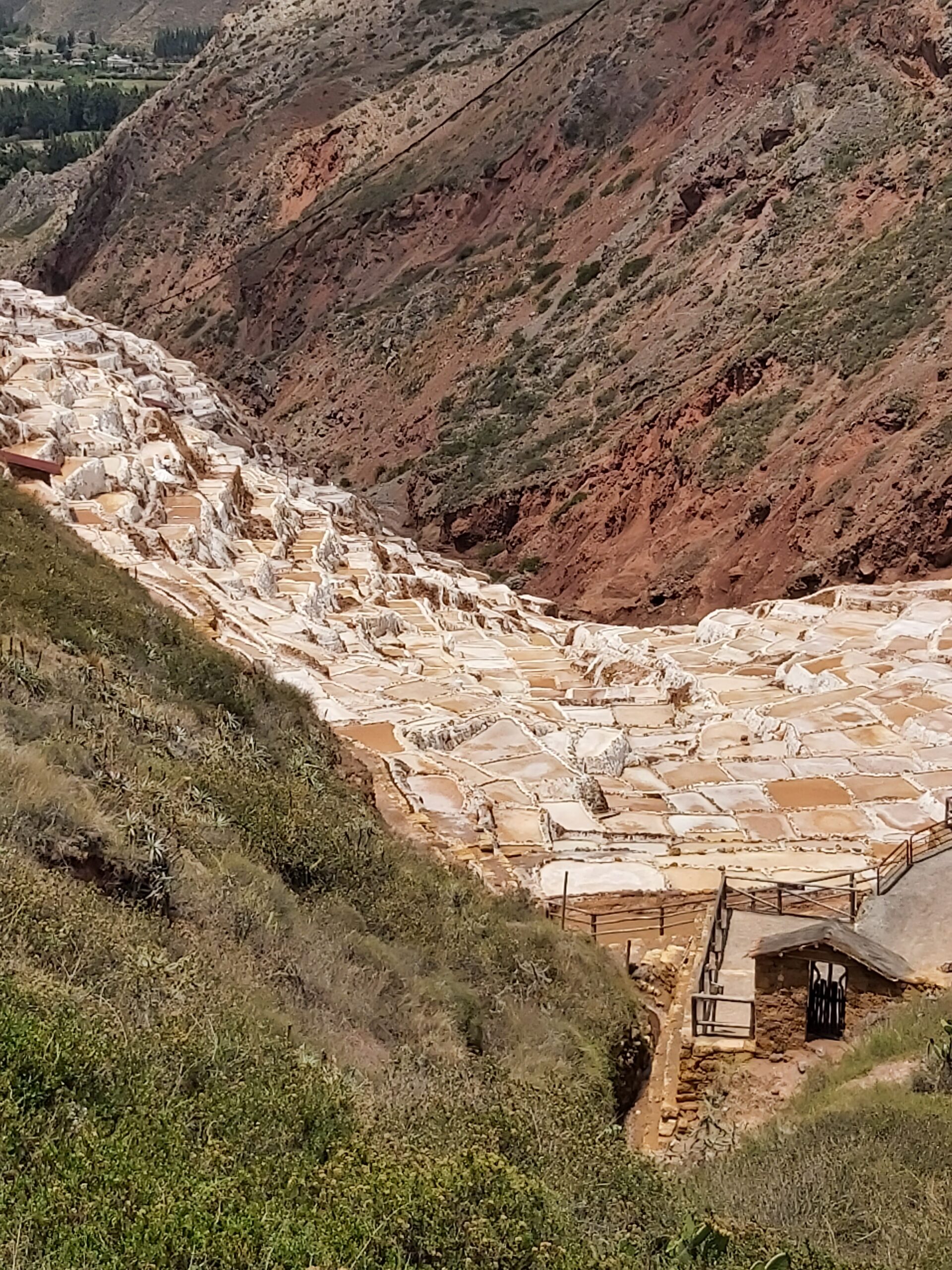 Δεύτερος τόπος επίσκεψης οι αλυκές Sallinerras. Ενθουσιάζεσαι με τις αλυκές; Μα δεν έχω δει τέτοιες πουθενά και με συνεπήρε ο τρόπος παραγωγής, ίδιος εδώ και 10 αιώνες, ήδη από τους προ-ίνκας πληθυσμούς. “Και πού το βρίσκετε το αλάτι βρε σεις εδώ στα βουνά;” Α, έχει μια πηγή που βγάζει νερό πιο αλμυρό απ’ της θάλασσας, γεμίζουν τις δεξαμενές με το νερό, καθώς είναι καθοδικές στις πλαγιές των βουνών, ξεχειλίζουν οι ανώτερες και γεμίζουν τις κατώτερες, τα αφήνουν 3 εβδομάδες και μετά συλλέγουν κατά στρώματα. Πρώτα τον “αφρό”, το άσπρο αλάτι, μετά το ροζ, τέλος το καφέ, που είναι για ιατρικές χρήσεις, ποδόλουτρα ρευματισμούς κλπ. Με το ροζ αλάτι μαγειρεύουν όλοι οι μεγάλοι σεφ του κόσμου και ο γνωστότερος του Περού, Gaston Acurio, για να ξέρετε. Αγοράσαμε σοκολάτες με αλάτι.