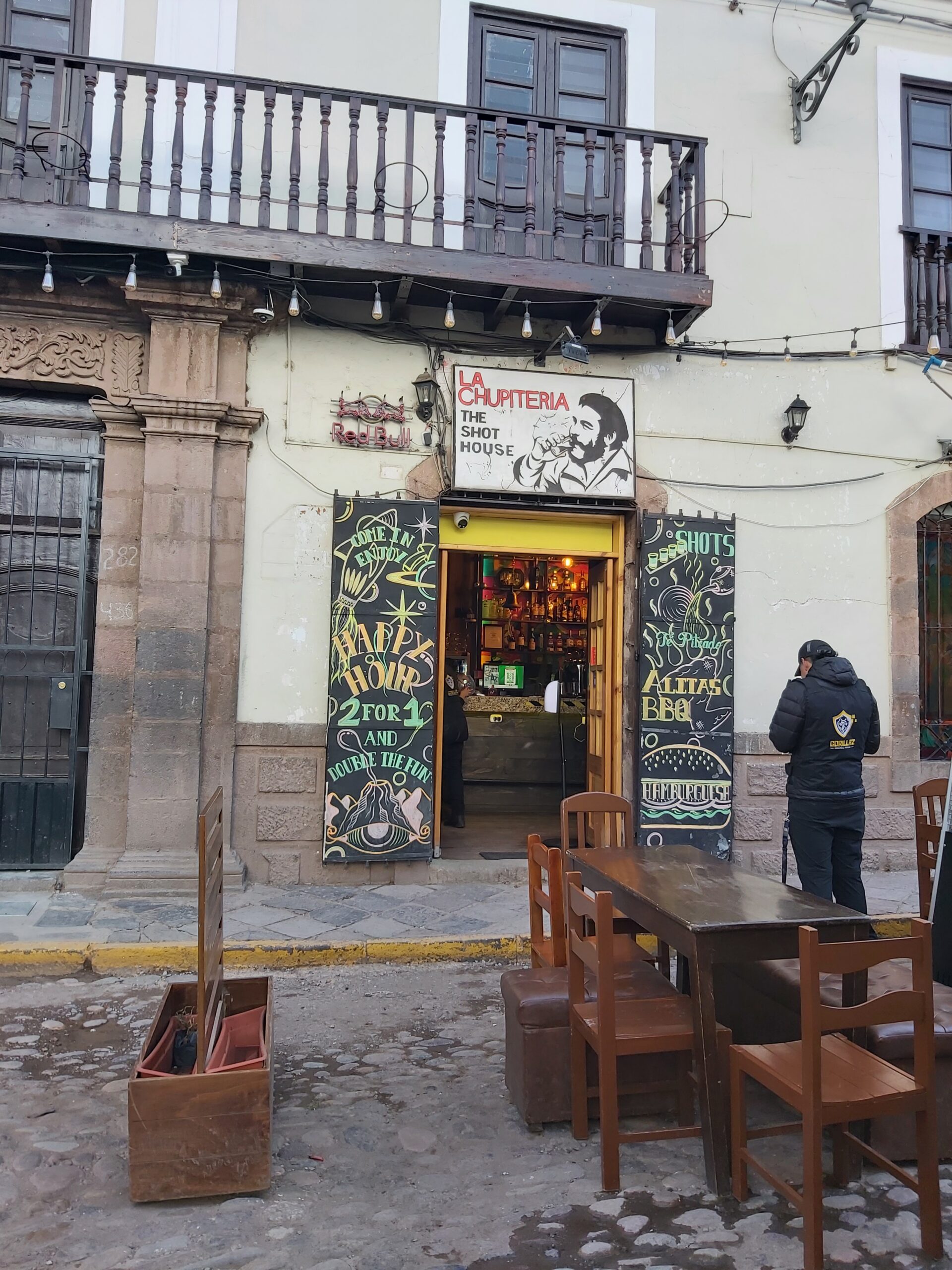 Επιστρέφουμε στο Κούσκο βραδάκι και νιώθουμε τόσο καλά, που το γιορτάζουμε και με την τοπική τους μπύρα, κουσκουένια, σε μπαράκι.