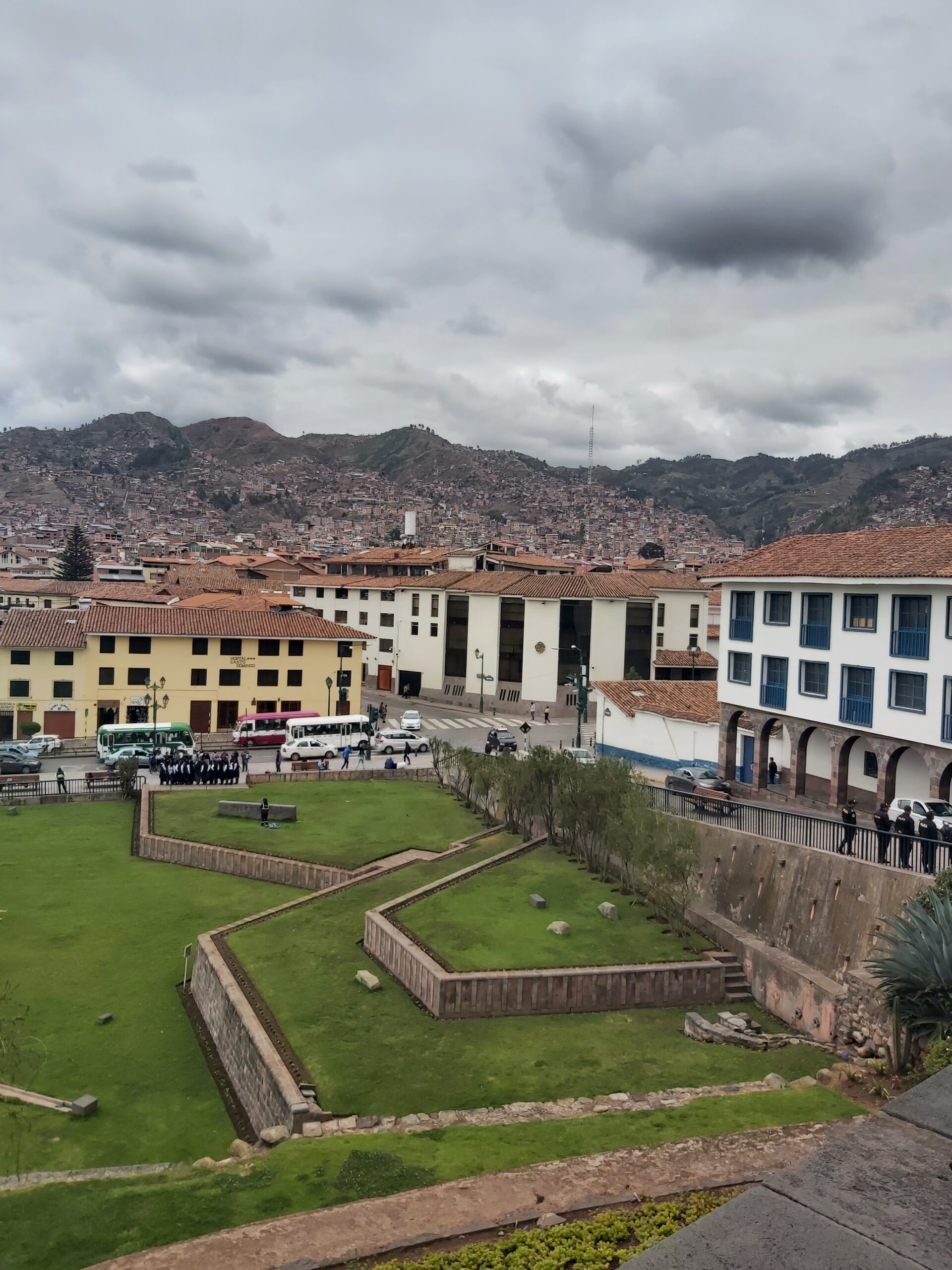 Ξενάγηση στα παλάτια των Ίνκας, μέσα στην πόλη και στις παρυφές της, που φυσικά, είναι ψηλά, ακόμη ψηλότερα. Η συνέχεια της ιστορίας διακόπτεται είτε από εμφύλιο πόλεμο μεταξύ των διαδόχων των βασιλιάδων και των υπηκόων τους, είτε επειδή έφτασαν οι Ισπανοί και τα ρήμαξαν όλα προκειμένου στη θέση τους να χτίσουν εκκλησίες και να τους αλλαξοπιστήσουν όλους, βιαίως. Τους έκοψε, όμως, ίσαμε τόσο, όσο να μην γκρεμίσουν και τις βάσεις των κτιρίων, οι οποίες είναι φτιαγμένες με κλίση, κάπως πυραμιδωτά, αυτό ήταν το εύρημα της εποχής για να τα κάνουν ανθεκτικά στους σεισμούς και εκ του αποτελέσματος κρίνεται αποτελεσματική μηχανική. Από κει και πάνω, έβαζαν τα δικά τους, εξώστες ξύλινους, παράθυρα με σταυρούς, ό,τι θύμιζε και υπενθύμιζε ποιος θεός κάνει κουμάντο πλέον. Κάποιος φιλότιμος επίσκοπος, πριν γκρεμίσουν αυτά που βρήκαν, κατέγραψε τα ευρήματα και τις πιθανές λειτουργίες τους. Π.χ. μια σπηλιά που λειτουργούσε ως Μαυσωλείο, και στην οποία βρέθηκε μούμια επιφανέστατου προσώπου, θεωρούν ότι είναι του σημαντικότερου βασιλιά των Ίνκας, του Πατσακχιούτσα.
