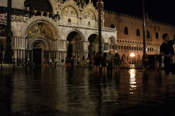 Εγώ ο έξυπνος, το κατάλαβα γρήγορα. Τα σκαλάκια της προκυμαίας τα κάλυπτε ήδη το νερό, το οποίο ανέβαινε αργά, αλλά σταθερά. Καλοκαιρινή αύρα, πανσέληνος, παλίρροια και η τζαζ που έπαιζε από τις πολυπληθείς ορχήστρες έξω από το Φλωριάν και τα υπόλοιπα καφέ του Σαν Μάρκο, συνθέτουν μια μοναδική εικόνα. Από τις αποχετεύσεις της πλατείας δεν σταματάει να βγαίνει νερό. Οι τουρίστες θεωρούν πως κάποιος τους κάνει πλάκα. Στην αρχή βλέπουν έκπληκτοι το φαινόμενο και στη συνέχεια που τα νερά ανεβαίνουν, γίνεται το παιχνίδι τους. Το Σαν Μάρκο έχει μετατραπεί σε χρόνο μηδέν σε λιμνοθάλασσα κι όλοι ευτυχισμένοι βγάζουν τα παπούτσια τους και τσαλαβουτούν στα νερά.