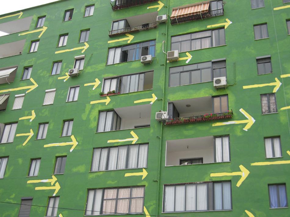 Μπαίνοντας κανείς στα Τίρανα εκπλήσσεται ευχάριστα. Παντού χτίζονται φουτουριστικά κτίρια, η πόλη διαθέτει μεγάλες λεωφόρους (το μποτιλιάρισμα είναι μεγάλο ωστόσο), πολυτελή ξενοδοχεία ενώ τα ραδιόφωνα παίζουν συνέχεια ελληνικά τραγούδια αφού όπως παραδέχονται οι ίδιοι Αλβανοί δεν έχει προκύψει ακόμη μια φωνή και ένας συνθέτης που θα τους συγκλονίσει. Ένα μεγάλο κτίριο είναι βαμμένο με τεράστια βέλη που δείχνουν προς το κέντρο της πόλης, Και αυτό έργο του Έντι Ράμα μου εξηγούν προκειμένου το κτίριο να μην κατεδαφιστεί και να πάρει καλλιτεχνική όψη. Ένας «τρελός καλλιτέχνης» στη θέση του πρωθυπουργού.