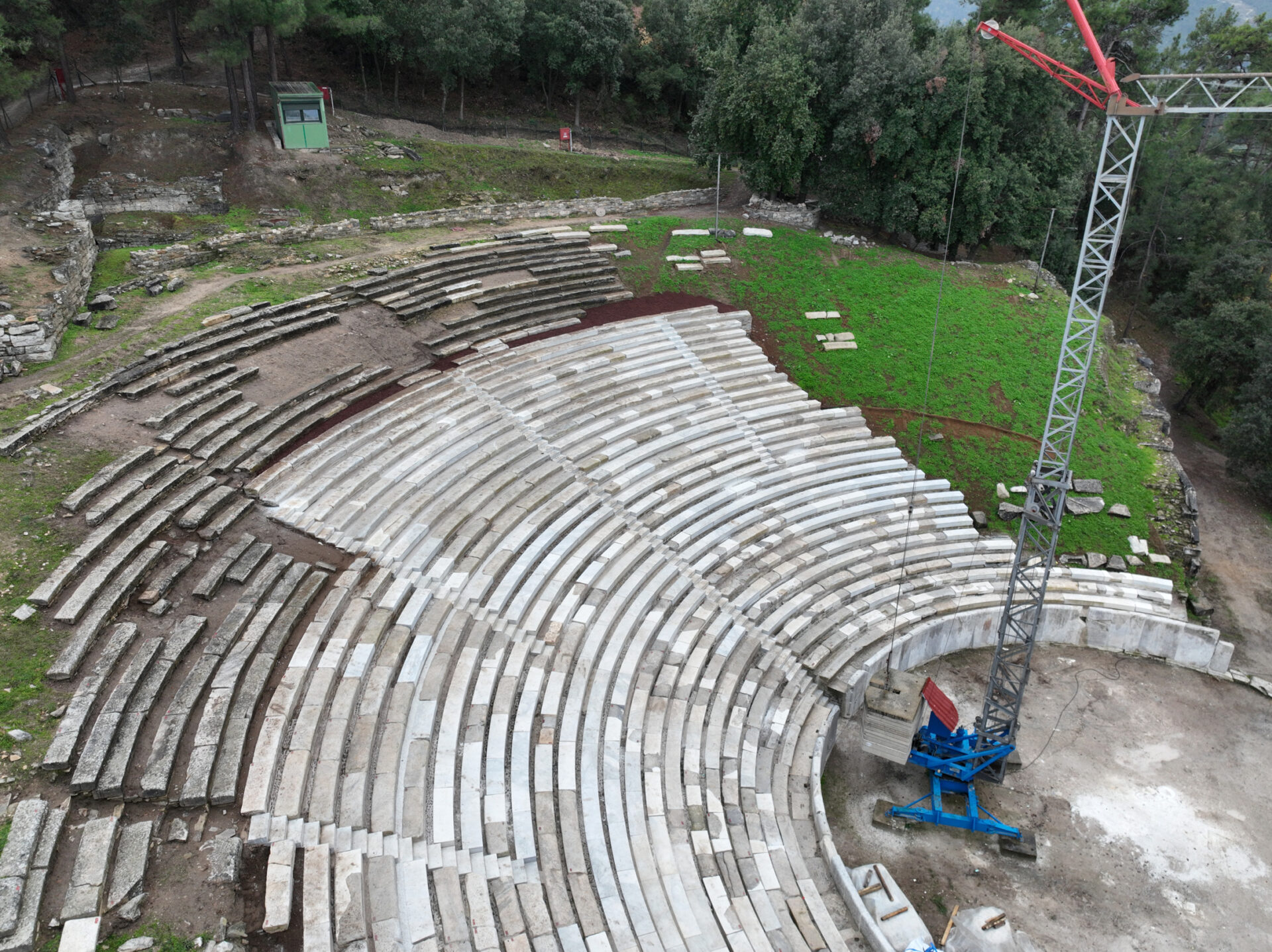Το αρχαίο θέατρο αποκαταστάθηκε με το φημισμένο λευκό μάρμαρο του νησιού