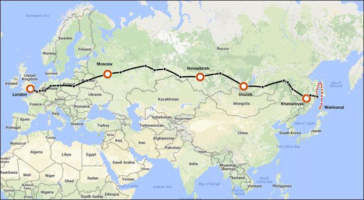 Και μόλις κατασκευαστεί θα μπορούν οι ταξιδιώτες να πηγαίνουν από το Τόκιο στο Λονδίνο με το τρένο διανύοντας μια απόσταση 13.500 χιλιομέτρων.