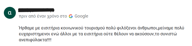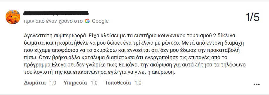 Ενώ σε κάποια καταλύματα μου έλεγαν ότι είχαν διαθέσιμα δωμάτια για τις ημερομηνίες που ήθελα, όταν τους έλεγα ότι είμαι με επίδομα κοινωνικού τουρισμού, ξαφνικά δεν είχαν διαθέσιμα δωμάτια.