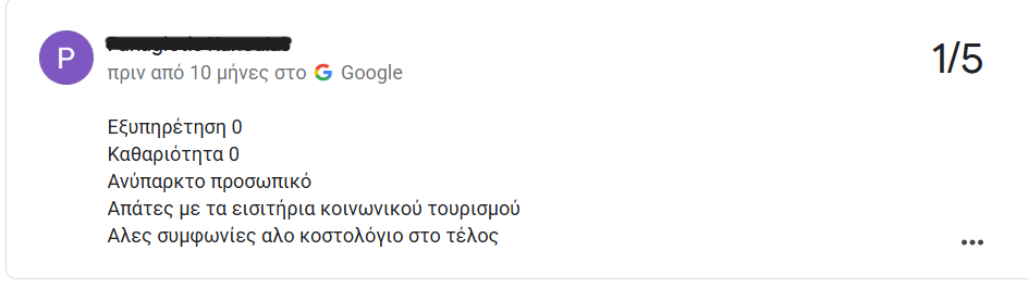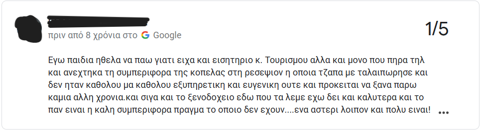 Δείτε παρόμοιες εμπειρίες από κριτικές ξενοδοχείων στην Google: