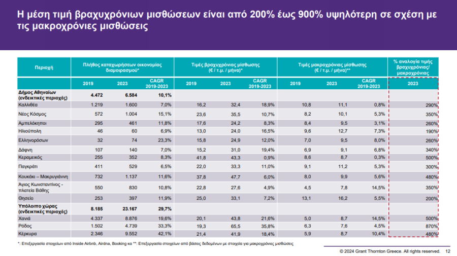 - Η μέση τιμή βραχυχρόνιων μισθώσεων είναι από 200% έως 900% υψηλότερη σε σχέση με τις μακροχρόνιες μισθώσεις.