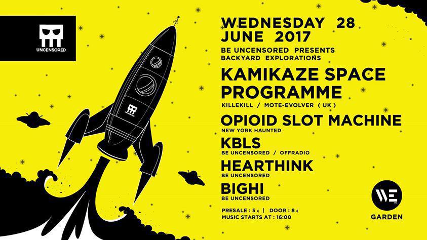 Δυνατό καλοκαιρινό open air event στην αύλη του WE. Καλεσμένος ο Βρετανός Kamikaze Space Programme απο το Μπρίστολ. Μαζί του οι locals Opioid Slot Machine, KBLS, Hearthink και Bighi.