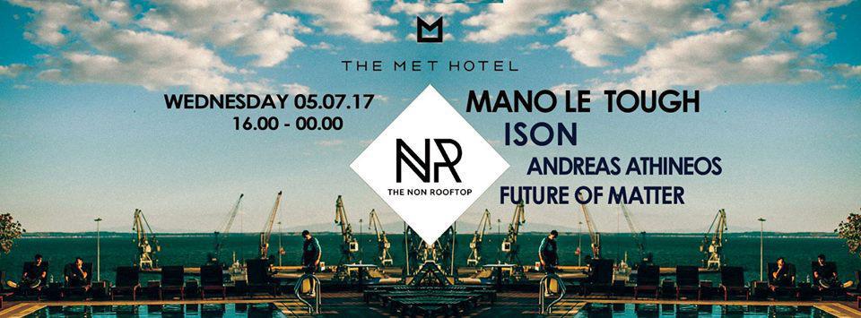 Tην Τετάρτη 5 Ιουλίου o Ιρλανδός Mano Le Tough, ένας από τους σημαντικότερους Dj της underground σκηνής αυτή τη στιγμή στον κόσμο ανεβαίνει στο SKYI BAR του THE MET HOTEL και αναλαμβάνει τα decks σε ένα πάρτυ που μόνο όσοι έχουν ζήσει καταλαβαίνουν ακριβώς για τί πρόκειται. Μαζί του θα είναι οι δικοί μας Ison & Andreas Athineos αλλά και οι Future Of Matter. Μην το χάσεις.