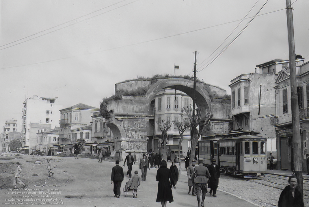 Εικόνες, ασπρόμαυρες και έγχρωμες, από την Αψίδα του Γαλέριου στο πέρασμα του χρόνου.