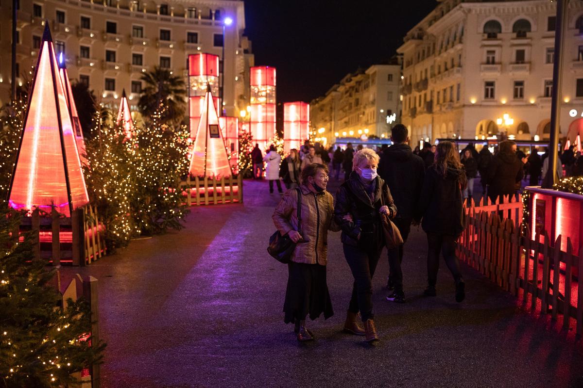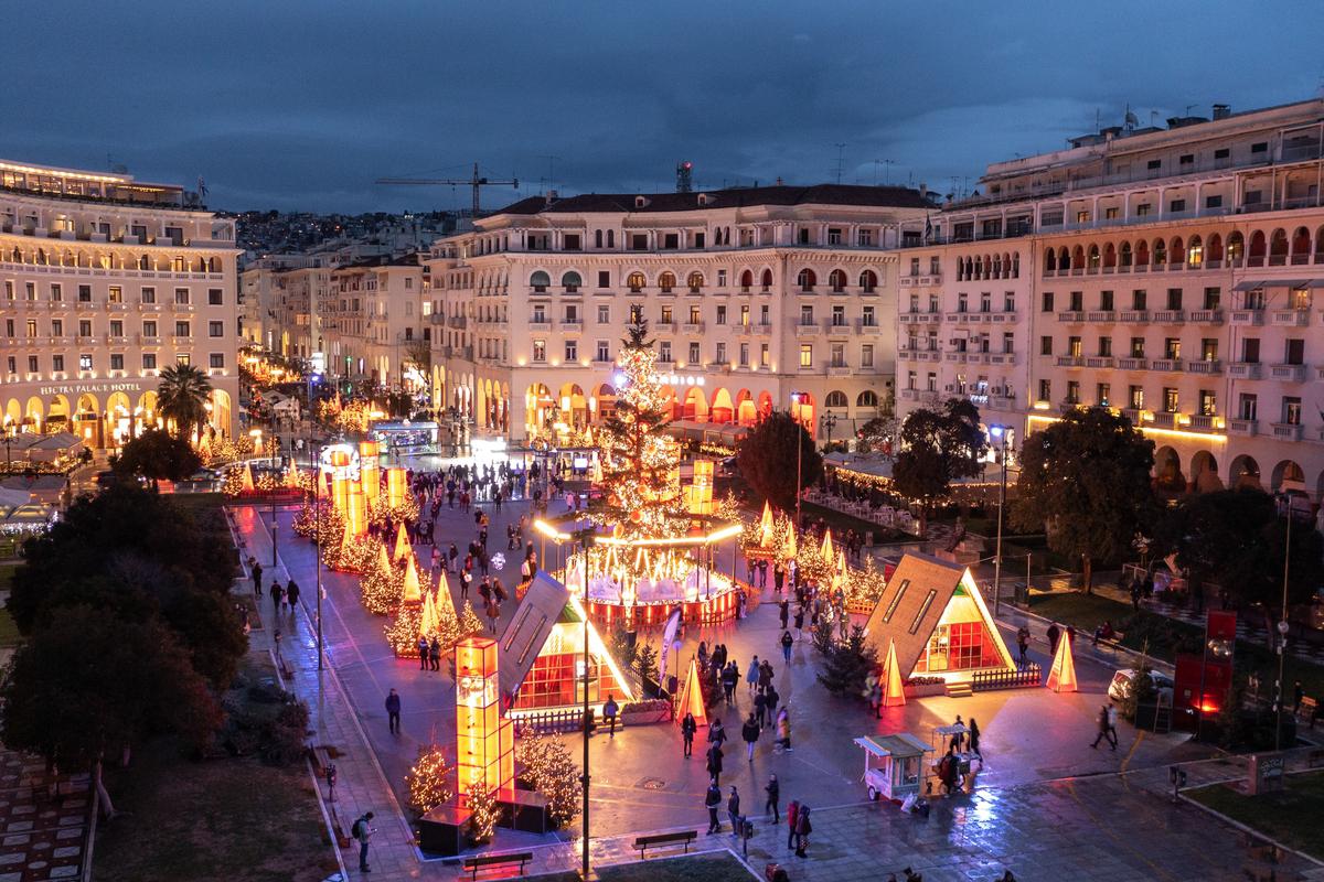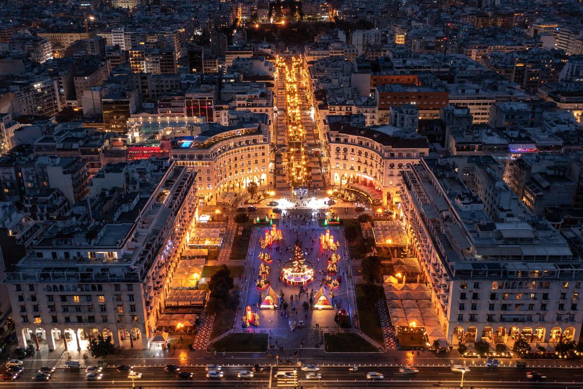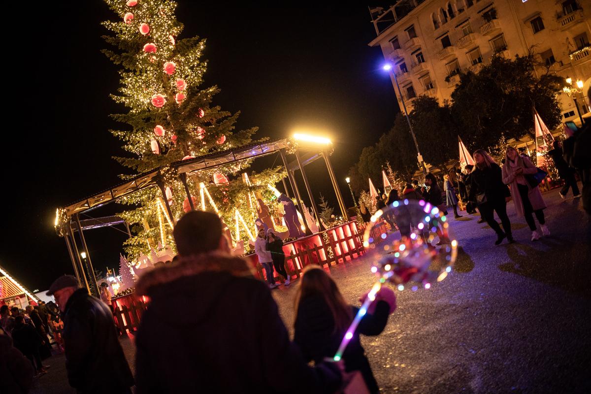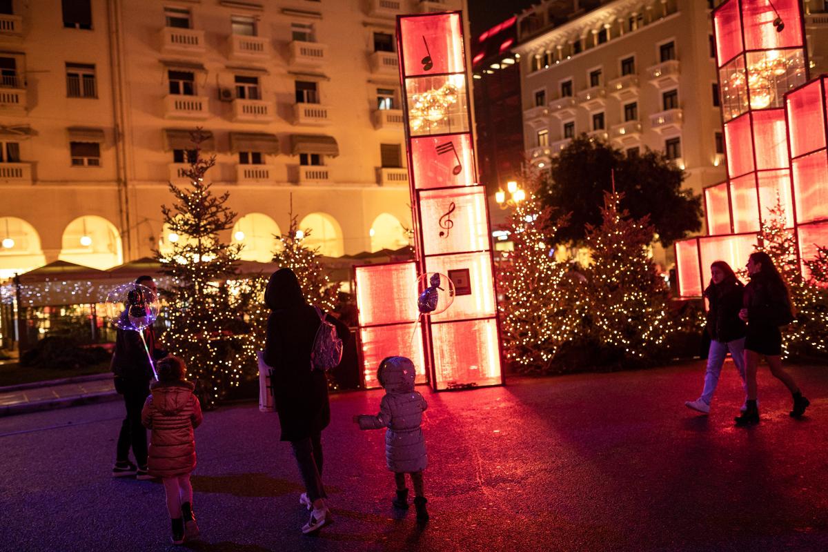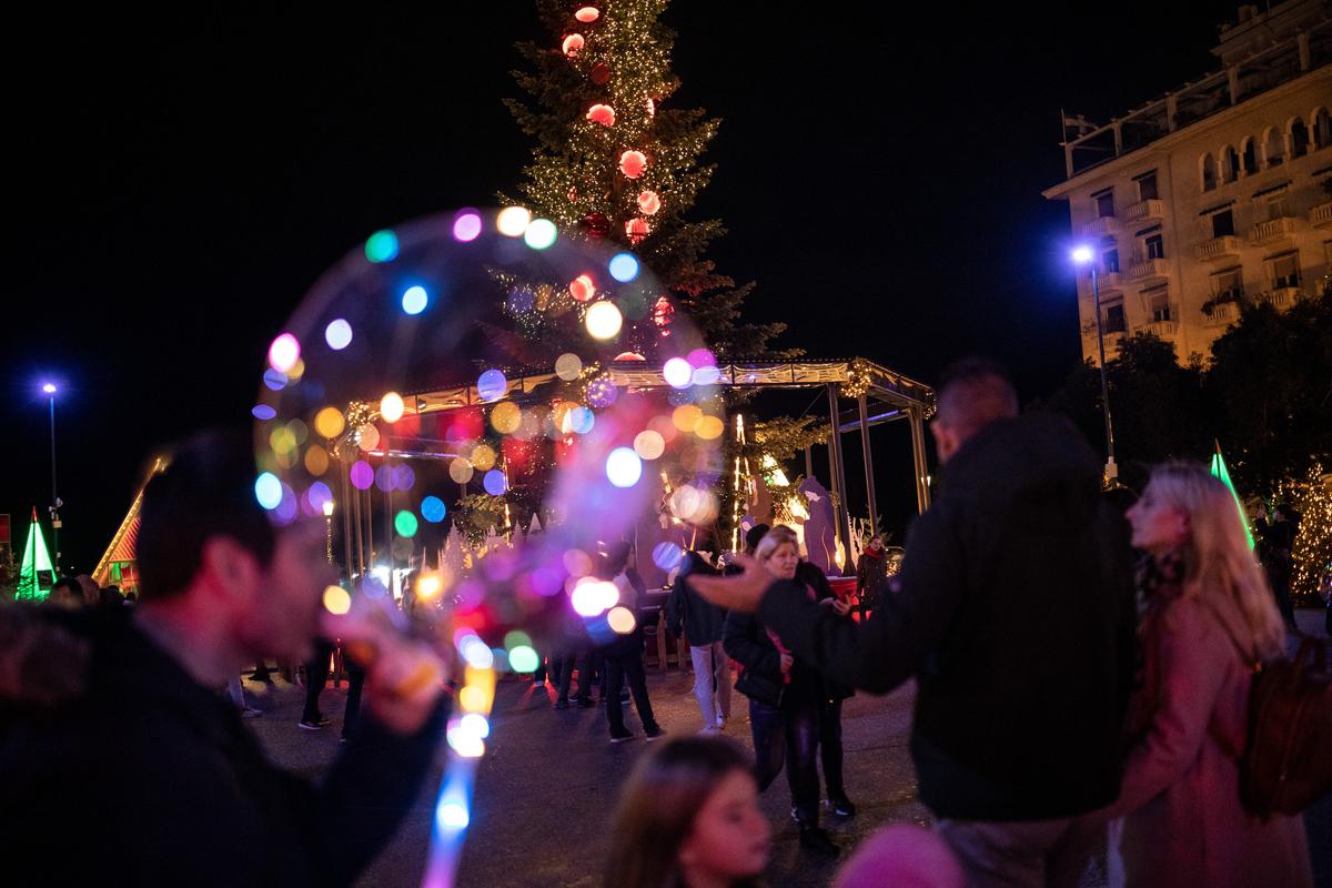 Χιλιάδες πολύχρωμα λαμπιόνια, φωτεινές επιγραφές, χριστουγεννιάτικα δέντρα στολίζουν την Θεσσαλονίκη.