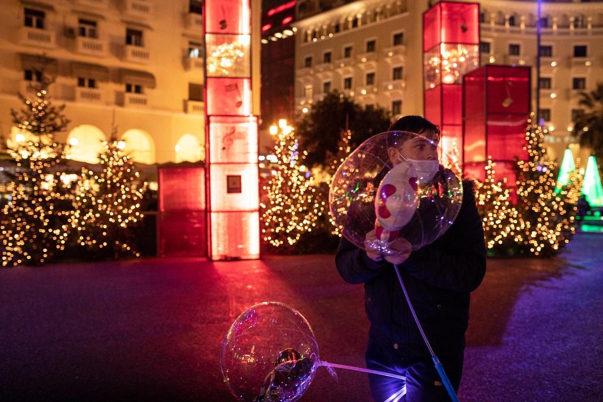 Χριστουγεννιάτικος στολισμός στην πλατεία Αριστοτέλους, Θεσσαλονίκη 11 Δεκεμβρίου 2021.