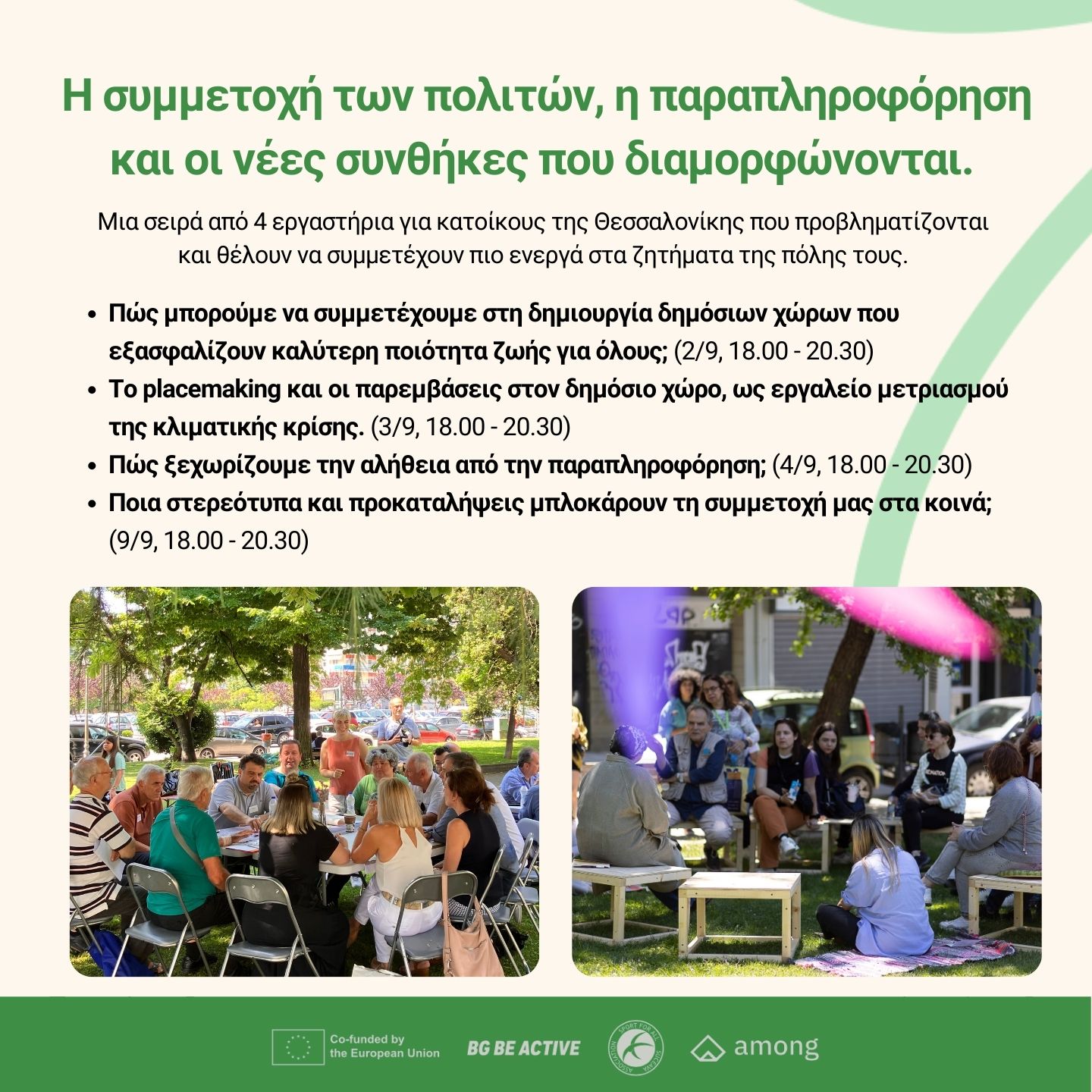 Μια σειρά από 4 εργαστήρια για κατοίκους της Θεσσαλονίκης που προβληματίζονται και θέλουν να συμμετέχουν πιο ενεργά στα ζητήματα της πόλης τους.