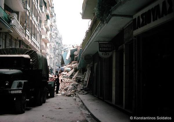 Το τότε ήταν η ώρα του σεισμού. 21 Ιουνίου, 11 το βράδυ. Εμείς, νέοι αρχιτέκτονες, δουλεύαμε ως αργά. Είχαμε μόλις φύγει από το γραφείο στη Γεωργίου Νικολαΐδη και με δύο αυτοκίνητα παρκάραμε στην ταβέρνα του Λαδά, στα πεύκα πάνω από το Καυταντζόγλειο. Ζεστή καλοκαιρινή βραδιά, είχε κόσμο. Περιμένοντας όρθιοι για τραπέζι κουνηθήκαμε γερά. Αλλά εκεί έχει βράχο, η δόνηση ήταν δυνατή αλλά δε σ‘ ανησυχούσε.