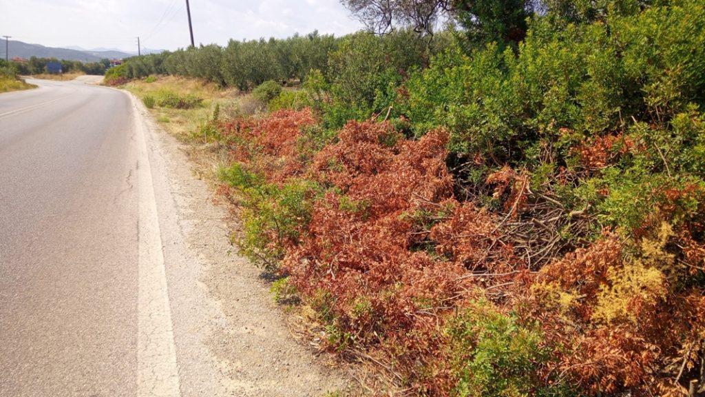 Τη θλιβερή εικόνα συνθέτουν ξερά χόρτα, κομμένα και παρατημένα.
