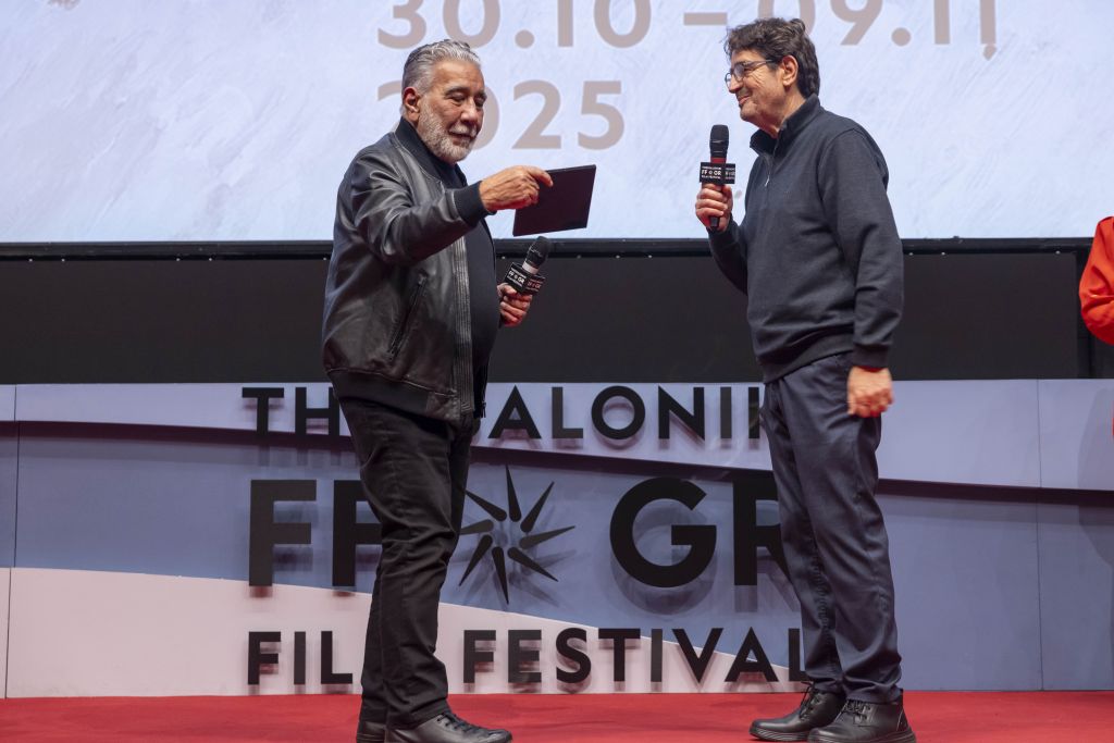 «Φέτος στο Φεστιβάλ Θεσσαλονίκης προβάλλουμε όλες τις ταινίες σου, ξαναβλέπουμε όχι μόνο τη διαδρομή ένας δημιουργού αλλά και την πορεία ενός ανθρώπου που δεν φοβήθηκε να κοιτάξει την κοινωνία κατάματα» ανέφερε και ευχαρίστησε τον σκηνοθέτη «για τις εικόνες του, για τους ήρωες του, για τη σιωπή ανάμεσα στις λέξεις και τα πλάνα, εκεί που κατοικεί η ψυχή του σινεμά».