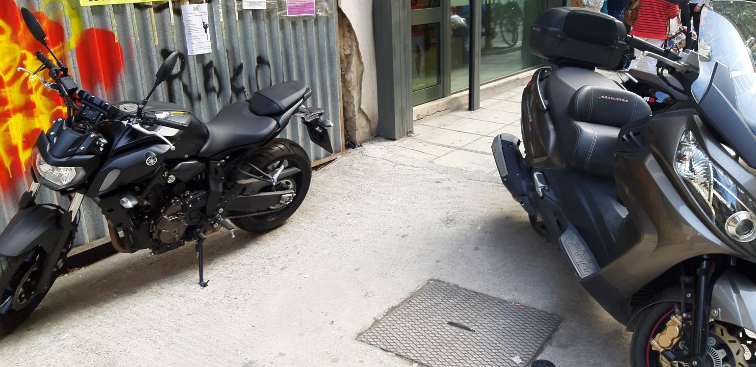 Παρόλο που το τελευταίο διάστημα ο δήμος Θεσσαλονίκης θέλοντας να λύσει το πρόβλημα της στάθμευσης δημιούργησε ειδικές θέσεις για τα δίκυκλα, μηχανές συνεχίζουν να μπλοκάρουν τα πεζοδρόμια.